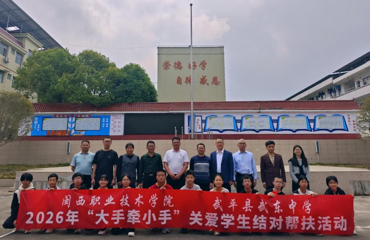 3月27日,城乡建筑学院“大手牵小手·结对关爱助成长”帮扶活动在武平县武东中学开展。城乡建筑学院院长林茂才、龙岩华兴彩印有限公司总经理李旭、广东长新隆智能科技有限公司总经理刘开文,武东中学校长吴梅涛、工会主席林德辉、副校长方玉萍,武东中学12名受助学生及双方教师代表参加。