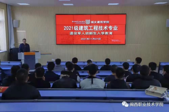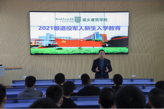 11月27日上午,城乡建筑学院在学术报告厅举行2021级退役军人新生入学教育。院班子成员、专业主任、支部书记、班主任及建筑工程技术专业40位新生参加。