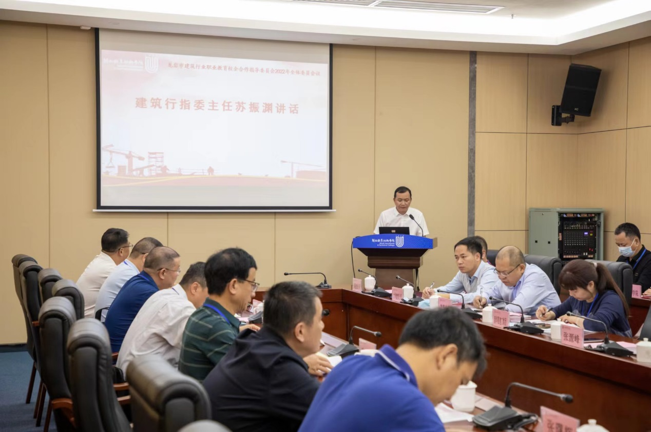 市建筑行指委主任、成森集团董事局主席苏振渊回顾总结了市建筑行指委成立一年以来的工作,提出了2023年工作思路。一年来,行指委在创新教育教学模式、培养行家里手、开展社会培训、校企共育名师、校企协同发展、校企双元育人等方面开展系列活动,取得了阶段性成果。他希望行指委下一阶段要围绕推动建筑产业走科技道路、推进建筑企业迈向现代化、促进建筑业转型升级和城乡建设领域绿色发展和高质量发展,加强科技创新和科技人才队伍建设,服务我市建筑业改革发展。要深推产教融合、校企协同育人,培养更多的建筑类高素质技术技能人才,助力我市职业教育高质量发展。