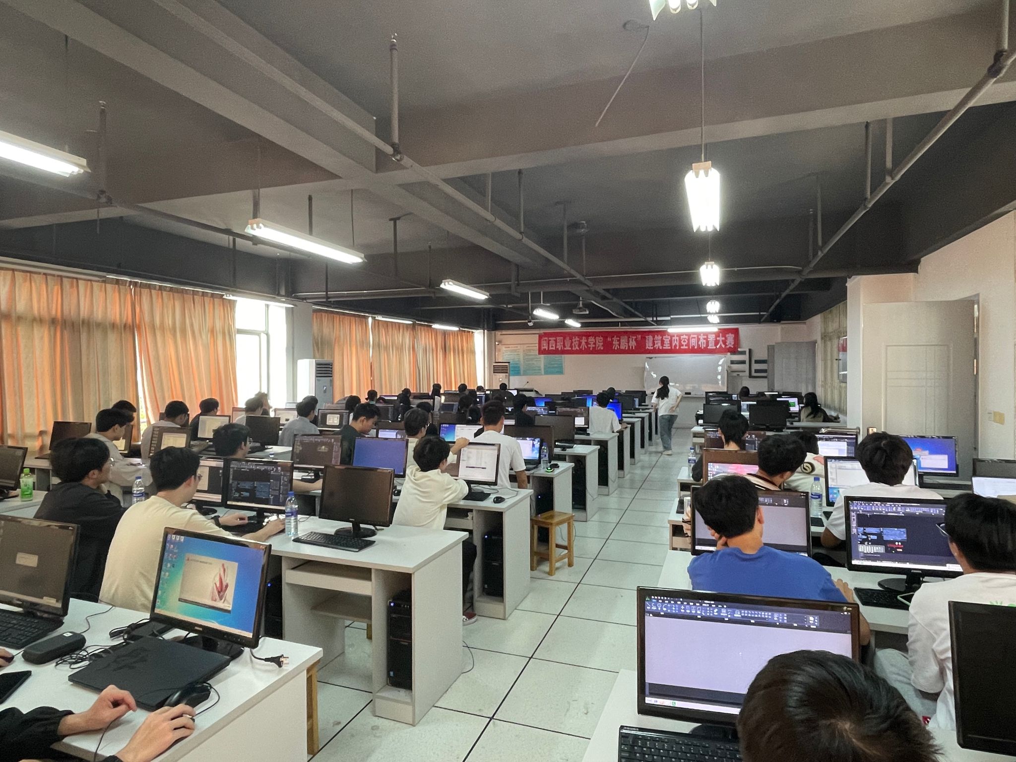 本次大赛旨在锻炼在校学生的专业能力,发掘学生潜力,提升学生的专业能力,强化学生的创新实践能力。共68名选手参加,通过软件绘图以及对空间布局的理解两部分进行比赛。龙岩市建筑装饰协会派出五位专家进行评比。
