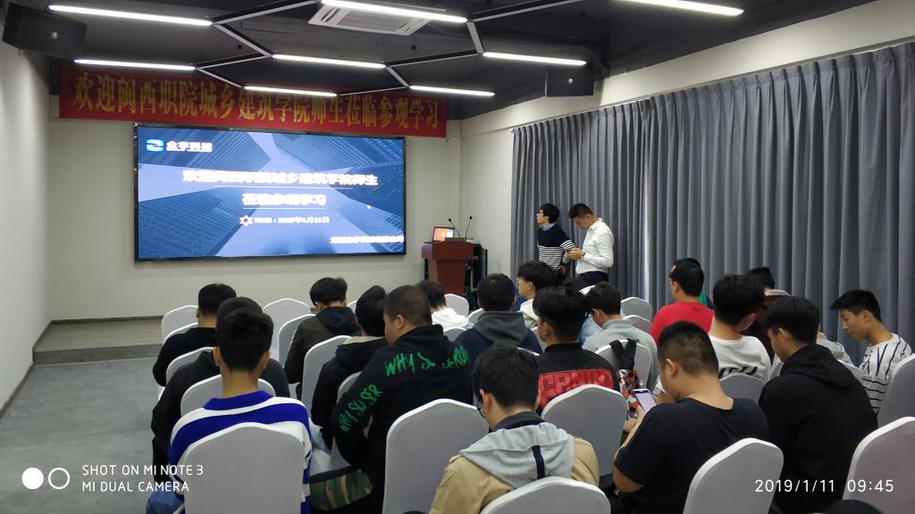 1月11日,在龙岩市众宇科技有限公司,黄志杰总经理分享了他们公司知户型软件,还结合实际,勉励同学们积极适应以后的工作环境,扎根建筑装饰类行业,努力学习专业知识,注重将理论知识同实践相结合,以期今后更好地回报社会。