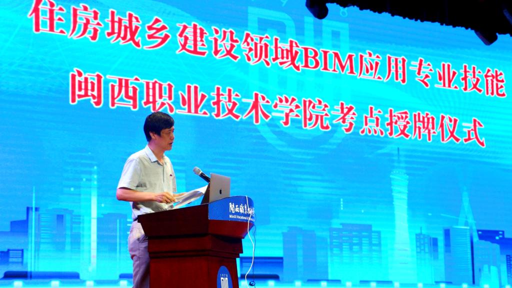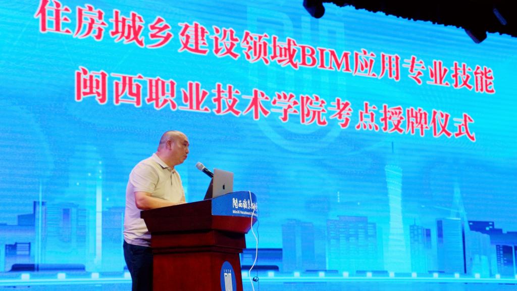 授牌仪式开始,城乡建筑学院院长李志文首先致辞,对龙岩市高校首家BIM应用专业技能培训报名考试点落户城乡建筑学院表示欢迎和支持!我院举办BIM应用专业技能培训顺应了城乡建设行业数字化科技发展的大趋势,是对土木建筑工程数字化教学的有益探索。同时他表示,我院接下来将进一步深化校企合作、产教融合,为学生和广大企业员工创造真刀实枪的BIM技术实训环境,为闽西建筑行业产业的转型发展注入更多的新思维,培养和输送更多的技术技能型人才。接着余金华阐述了BIM技术在建筑行业的发展趋势和发展前景。他表示MG冰球突破官网实施BIM应用技能培训考核,积极响应《国家职业教育改革实施方案的通知》精神,是主动适应新科技革命和产业变革对高素质复合型技术技能人才的需求,为技术技能人才的持续成长拓宽了通道。