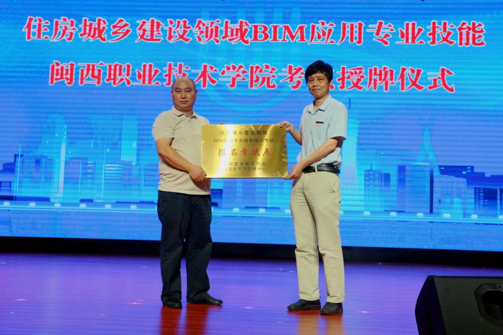 随后余金华为MG冰球突破官网授牌“住房城乡建设领域BIM应用专业技能培训考试报名考试点”,李志文接牌。此次授牌标志着MG冰球BIM技术人才培养迈出了新的步伐,对学校建筑信息化人才的培养和应用技能水平的认证及产教学融合模式的推广,都具有深远的意义。