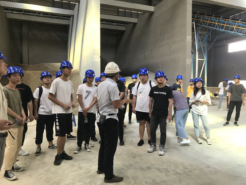 活动分为两部分:一是企业专家的现场教学,生产经理邱晨首先向同学们介绍了装配式建造的优势、生产基地的情况,带领同学们参观了构件展示区——预制柱、预制梁、预制叠合板、预制楼梯等和一些市政部品部件,重点讲解了装配式构件的连接——灌浆套筒。随后到企业的新型环保搅拌站、自动化上料系统参观,砂、石、水泥等材料通过自动化上料系统直接传送到生产车间布料振捣。同时还参观了自动流水生产线、固定模台生产线、钢筋加工生产线和蒸汽养护窑等设备。二是现场实践,学生参与了混凝土叠合板钢筋的布置和叠合板布料振捣过程,深入了解了建筑产品的产出过程,提高学生对专业内容的把握和理解,真正做到理论与实践相结合。