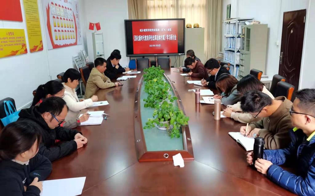 1月5日,城乡建筑学院召开党政联席(扩大)会,集中学习研讨《深化新时代教育评价改革总体方案》。城乡建筑学院党委委员、党支部书记、专业主任参加,李志文书记主持会议。