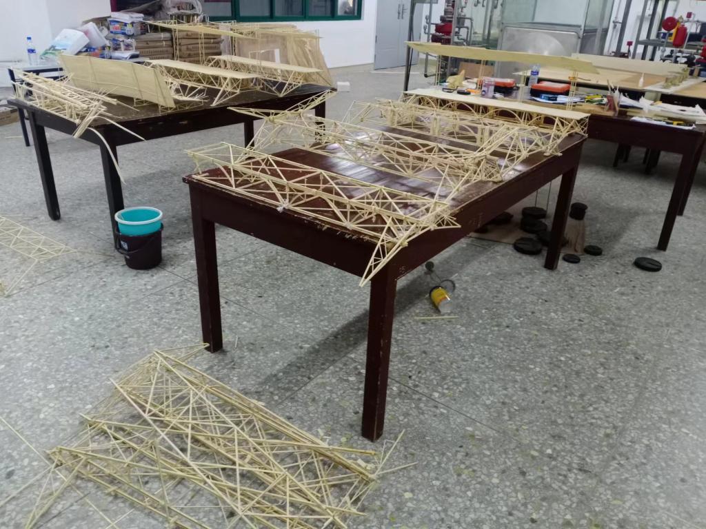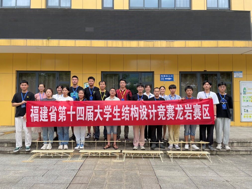 福建省大学生结构设计竞赛是培养大学生创新意识、合作精神和工程实践能力的学科性竞赛,由福建省教育厅、福建省住房和城乡建设厅、福建省土木建筑学会主办。2022年共有41支代表队参赛,赛题为《风雨步道桥梁结构模型设计与制作》,参赛选手按照赛题要求制作桥梁和挡雨棚,要求模型质量足够轻巧,能在保持总竖向荷载45kg的条件下承受强烈的风荷载并保证变形不超出限值,对学生的创新、实操和团队协作等能力要求较高。