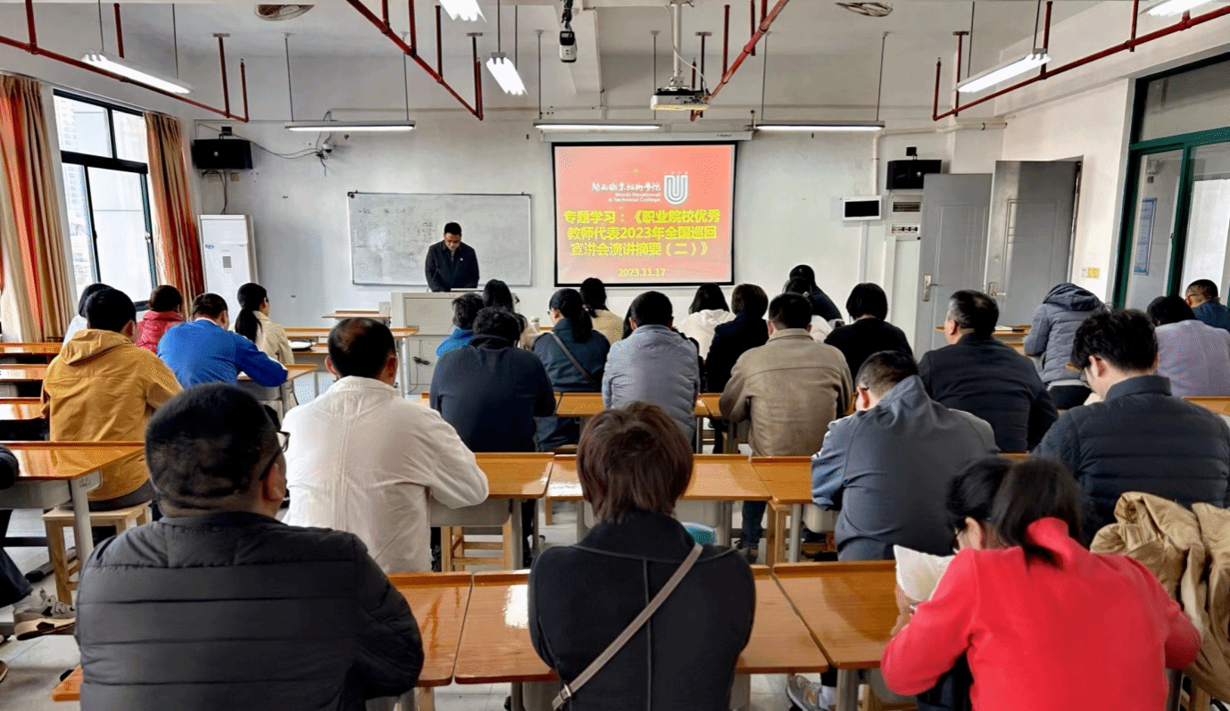11月17日,城乡建筑学院全体教职工在万源楼613制图室集中学习《职业院校优秀教师代表2023全国巡回宣讲会演讲摘要(二)》。通过学习,引导大家向职业院校优秀教师代表学习,传承、弘扬教育家精神,聚焦打造“予生最好学校”,进一步锤炼师德,进一步提升职业能力,全面教好书、育好人、履好职,拒绝“躺平”,杜绝上班(上课)迟到、早退现象,严守新时代教师职业行业十项准则。