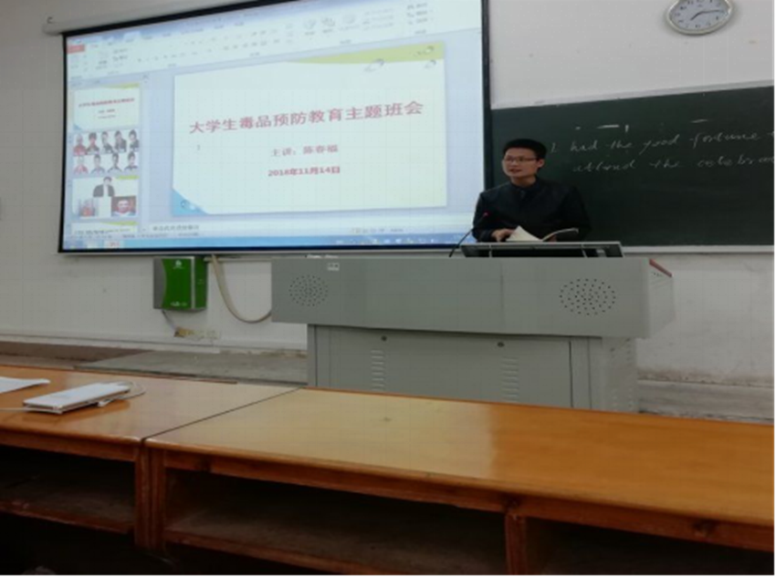 2018年11月14日晚上7:00,由城乡建筑学院团委书记陈春福老师主持的禁毒宣传教育主题班会在MG冰球良才楼505举行。2018级工程造价、建筑装饰五个班的全体同学们参加了此次班会。