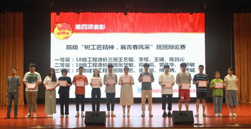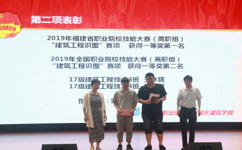 大会首先进行了校级、院级“优秀团干”、“优秀团员”、“优秀青年志愿者”的表彰;随后表彰了在今年国赛和省赛中获的佳绩的同学,特别是17级王泳镔、吴泽新两位同学代表学校参加2019年福建省职业院校技能大赛(高职组)“建筑工程识图”赛项获得一等奖第二名,参加2019年全国职业院校技能大赛(高职组)“建筑工程识图”赛项获得一等奖第二名的优异成绩。接着学生代表、院团委副书记张伟鹏同学发言,他激励共青团员要时刻牢记自己团员身份,在学习、生活和工作上要起到先锋模范作用;非团员积极向团组织靠拢,接受团组织的考验,争取早日入团;会上,院党委书记詹晓青就纪律、学风建设和先进性等方面对如何做一名优秀学生进行了补充,激励学生在今后的学习和工作中取得更好的成绩。