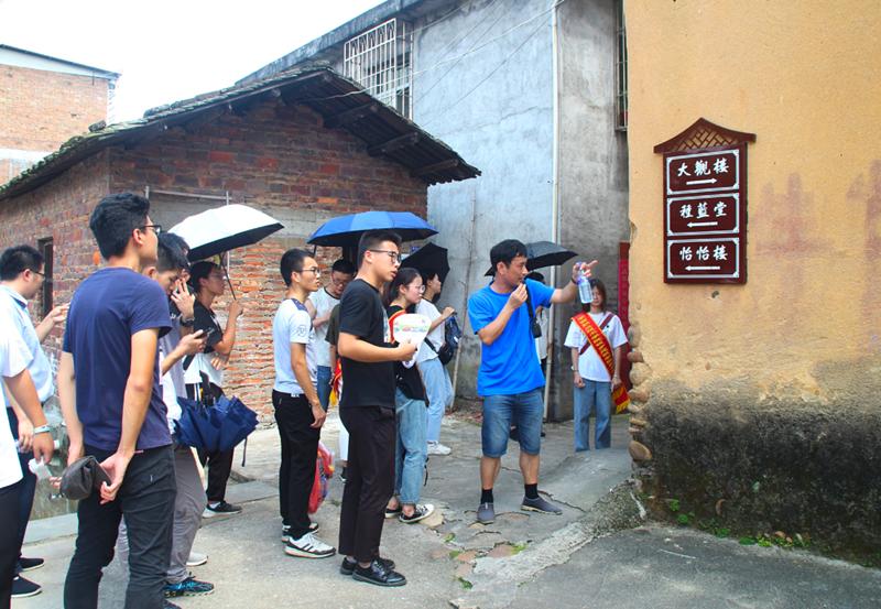 下午,追随历史走访官洋村古居文明,当地詹银汉老师很热心带领闽大师生参观了大观楼、种蓝堂、怡怡楼等古民居,并对它们的历史作了详细的解说。通过此次“青春心向党,建功新龙岩”之“走进美丽官洋,助力乡村振兴”的暑期“三下乡”社会实践活动,紧紧围绕基层经济社会发展和干部群众生产生活中的实际需求等。进一步激发广大青年学生成才报国的责任感和积极性,充分发挥社会实践作为加强和改进大学生思想政治教育重要途径的优势,引导大学生在社会实践中深化对中国梦的理解认识,更是学习贯彻习近平新时代中国特色社会主义新思想和党的十九大精神,努力践行习近平总书记在纪念五四运动100周年大会上的重要讲话,更是为今后的学习和工作指明了方向。