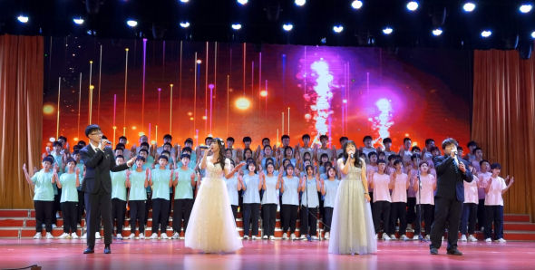 活动开场,全体人员满怀激情合唱《没有共产党就没有新中国》。12个新生班级组成的8个合唱队,先后演唱《绽放》、《客家红》、《走进新时代》、《社会主义好》、《最美时光》、《青春舞曲》、《我和我的祖国》、《向往》等8首歌曲,在歌声中回望波澜壮阔的百年党史,歌颂伟大的党、赞美强大的祖国,展现团结渠上最美时光,推动党史学习教育走深走实,表达城建学子颂党恩、听党话、跟党走的决心,努力成为一技在手的新时代阳光工匠。