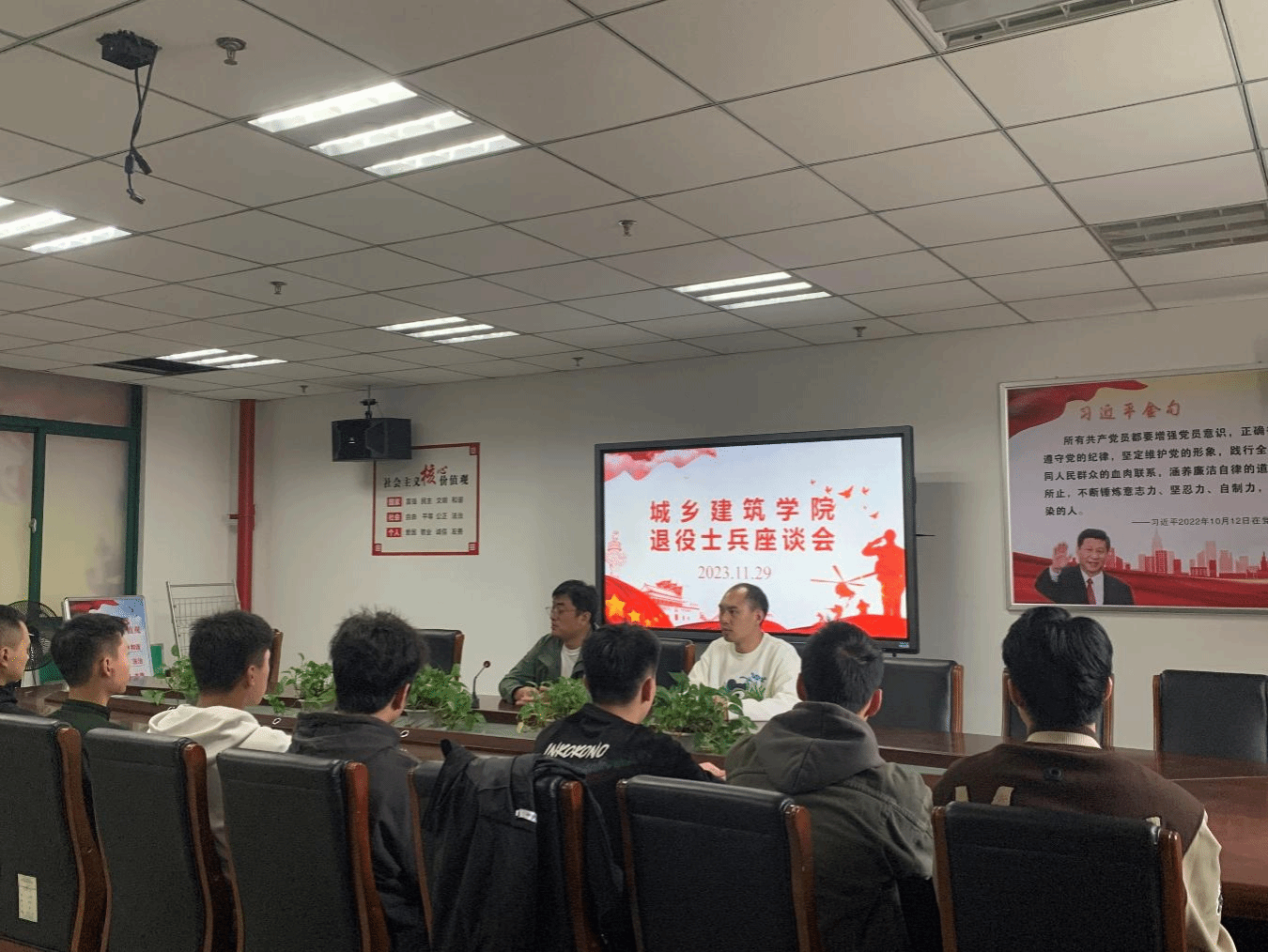 11月29日,城乡建筑学院在万源楼602会议室召开退役士兵座谈会。党委副书记何煊强、团委副书记邱志国,2022级、2023级退役士兵参加。
