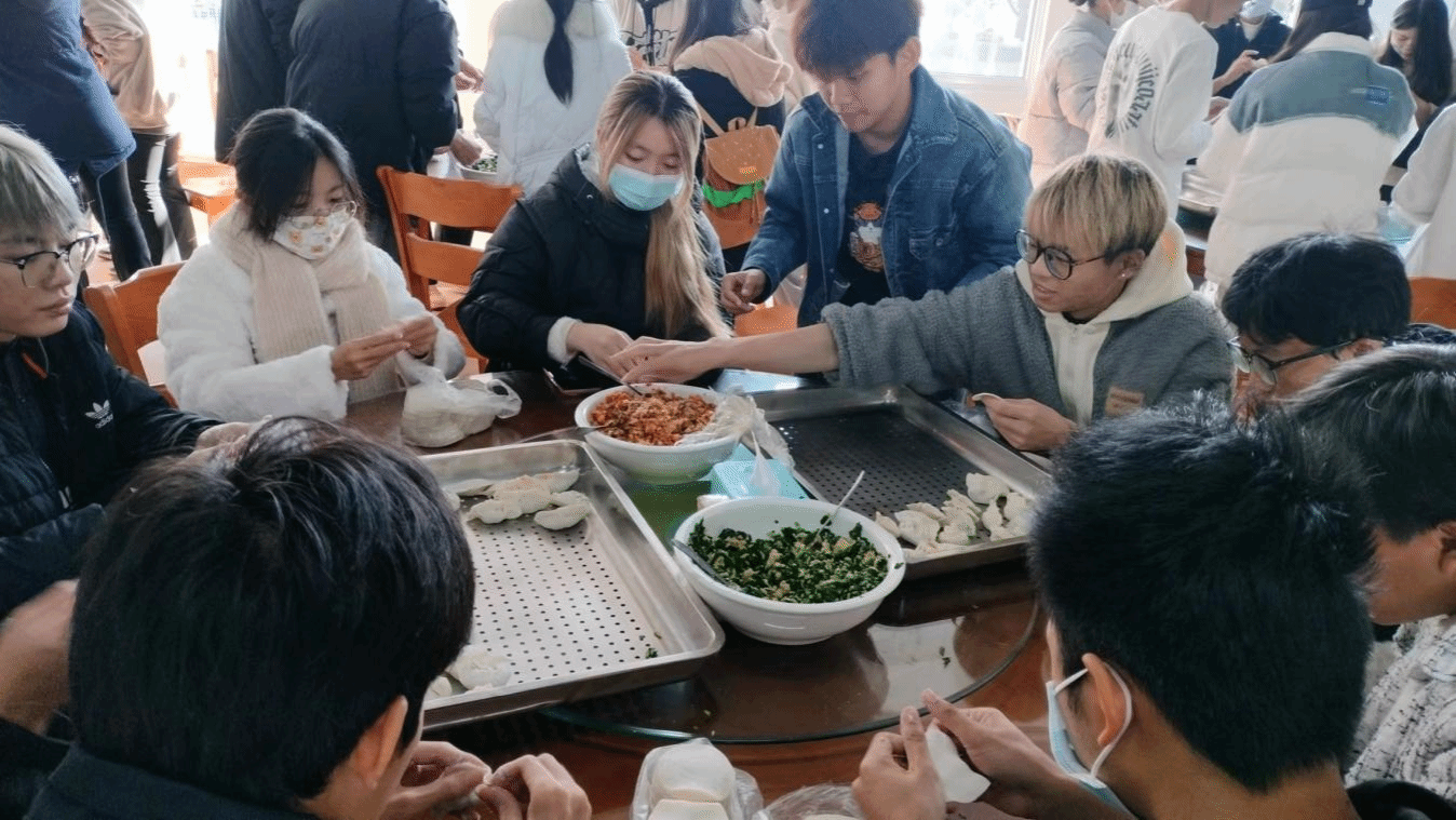 冬至当天,在教职工食堂,师生们挽起袖子,一起包饺子,煮饺子,品尝饺子,共同欢度冬至节日,其乐融融。志愿者们将煮熟的饺子打包好,分送给教师、保安保洁人员等,并致以祝福和感谢。