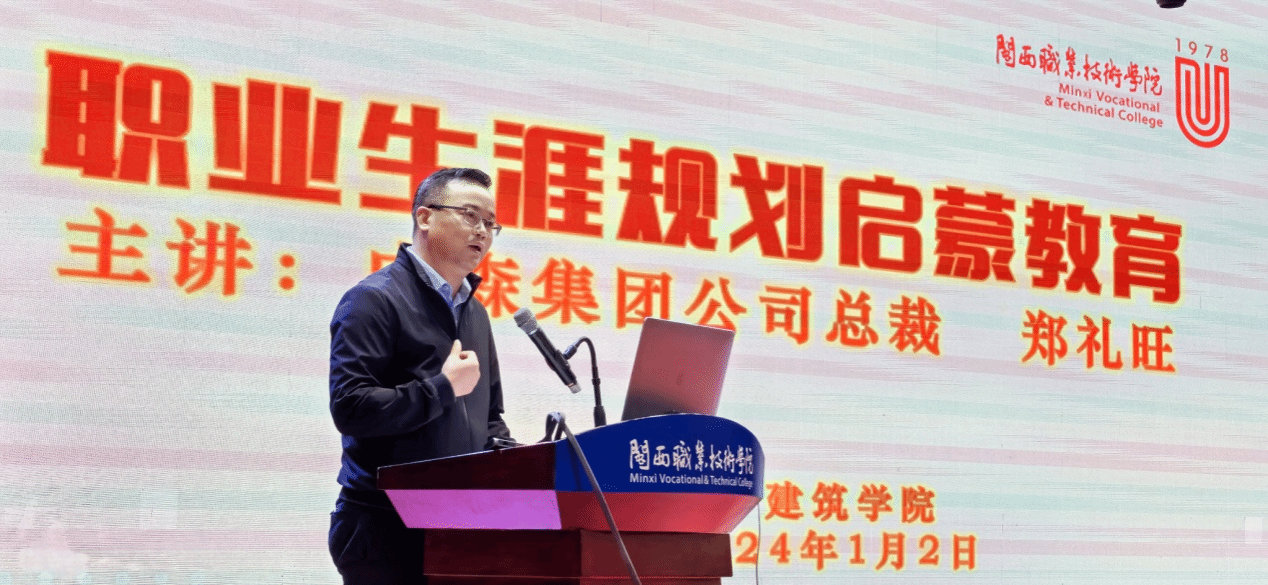 MG冰球突破官网1999届优秀校友、福建成森集团公司总裁郑礼旺作专题辅导报告。他分享了从学生到总裁“一步一个脚印”的职业历程,回顾了成长发展的艰辛与喜悦。希望同学生们正确定位自己,与时代发展同频同步,趁早做好职业生涯规划。引导大家学会“先做人再做事”、“没有条件创造条件也要上”,始终充满信心、坚持终身学习,杜绝躺平、摆烂,厚植家国情怀和团队精神,做一个有责任、敢担当的新时代大学生,不畏艰难、勇毅前行,不负青春、不负韶华,实现人生梦想和价值。