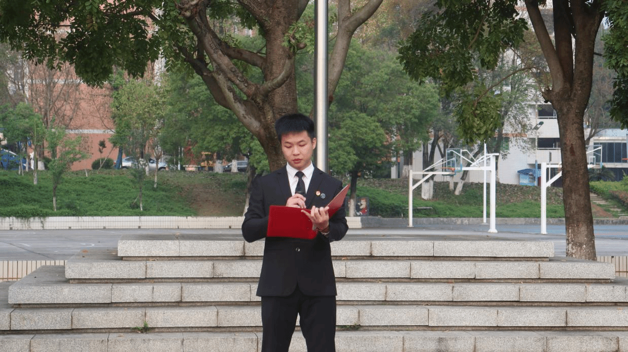 升旗仪式开始,伴随着雄壮激昂的国歌声,鲜艳的五星红旗徐徐升起,全体同学行注目礼。国旗下,邱志国老师鼓励同学们应以积极的态度面对大学的学习生活,不断追求卓越,同时也要脚踏实地,坚持不懈锤炼过硬本领。学生代表王陈浩同学表态,作为新时代青年,我们应切实做到知责于心、担责于身、履责于行,不负韶光,以梦为马,砥砺前行,为祖国的繁荣富强、中华民族伟大复兴努力奋斗。