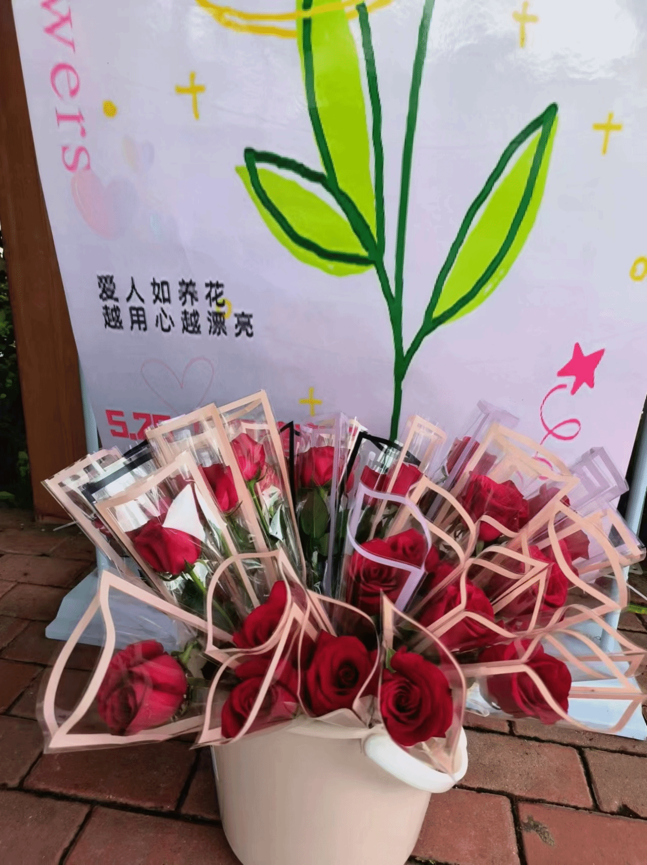 活动采用线下摆点、线上与线下投稿相结合的形式开展。参与者可在活动现场领取便利贴写祝福短语,或者通过线上短信、邮箱投放故事稿件,参与者即可领取一枝玫瑰花。最终评选出5个故事并以推文的形式在公众号发表。