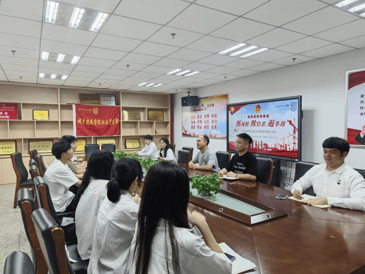 6月14日,城乡建筑学院于万源楼602会议室开展安全生产月主题教育专题交流会。会议由院团委副书记邱志国主持,院两委学生干部参加。