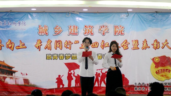 4月22日下午,我院在食堂四楼举行2017-2018学年“五四”先进表彰大会暨“青春向上,并肩同行”红歌会。团委书记吴晓莹、学生工作领导小组办公室主任王永峰、院两委干部、16级班干部及17级全体学生参加了此次活动。