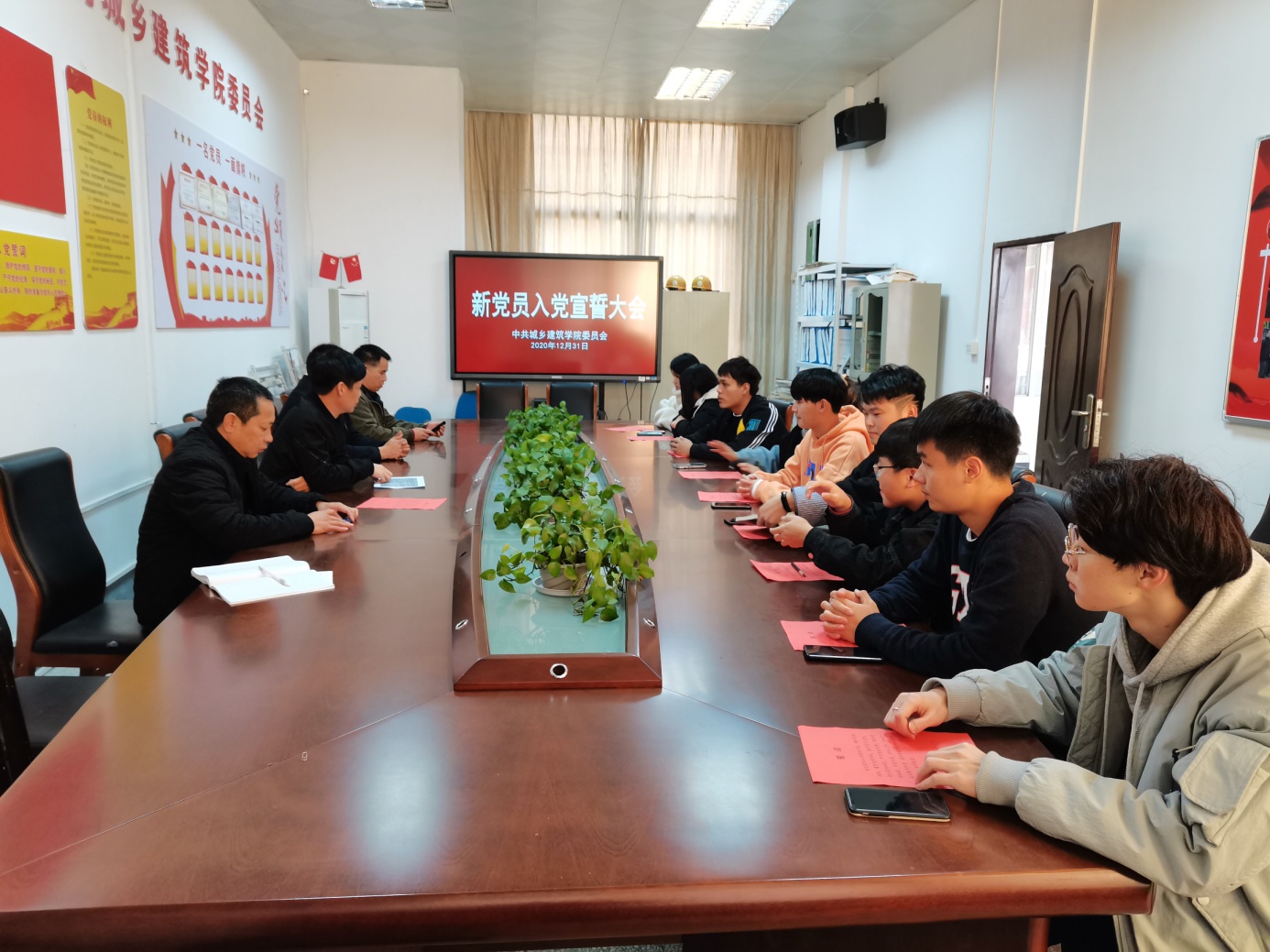 12月31日,城乡建筑学院新党员宣誓大会在建筑实训基地党员活动室举行。党委委员、党支部书记及9位新发展党员参加。会议由城乡建筑学院党委书记李志文主持。