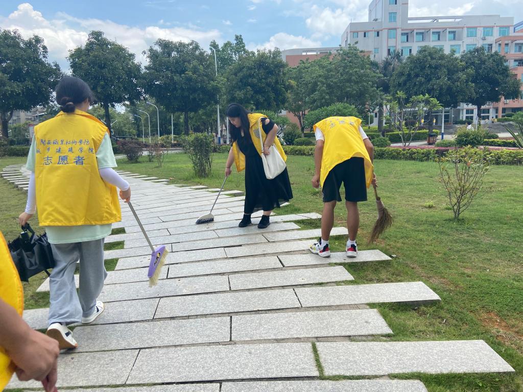 入党积极分子分成7个组,分别负责良才楼、办公楼、学生食堂、教工食堂、西大门至南大门道路、篮球场边至10#前的道路、7#8#间至13#的道路等七个区域,重点清扫烟蒂、纸屑、塑料等垃圾,开展垃圾分类宣传,劝导乱扔垃圾等不文明行为。入党积极分子顶头烈日,齐心协力、紧密合作,发扬不怕苦、不怕累的精神,按要求完成任务、接受劳动教育。