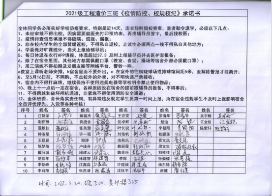 建筑学院委高度重视、积极行动,抓实抓细做好疫情防控工作。315日,召开疫情防控工作会议,一时间传达贯彻省教育系统疫情防控工作视频会议精神,强调部署全院师生积极参与扎实做好疫情防控处置工作。3月16日班级利用中午、傍晚时间召开“疫情防控”主题班会,辅导员传达校、院两疫情防控工作会议精神,通报典型案例,加强思想教育,强调校规校纪;院班子成员分别到相应班级督导动员要求全体学生做好防输入,不要抱有侥幸心理,认真参加应急处置演练。3月18日、3月20日、3月23日、4月1日、4月2日,各班级通过线上微信群、线下教室结合召开疫情防控主题班会,全体师生签订《承诺书》,院领导班子成员学入班级参与主题班会,做到再动员、再部署、再落实。