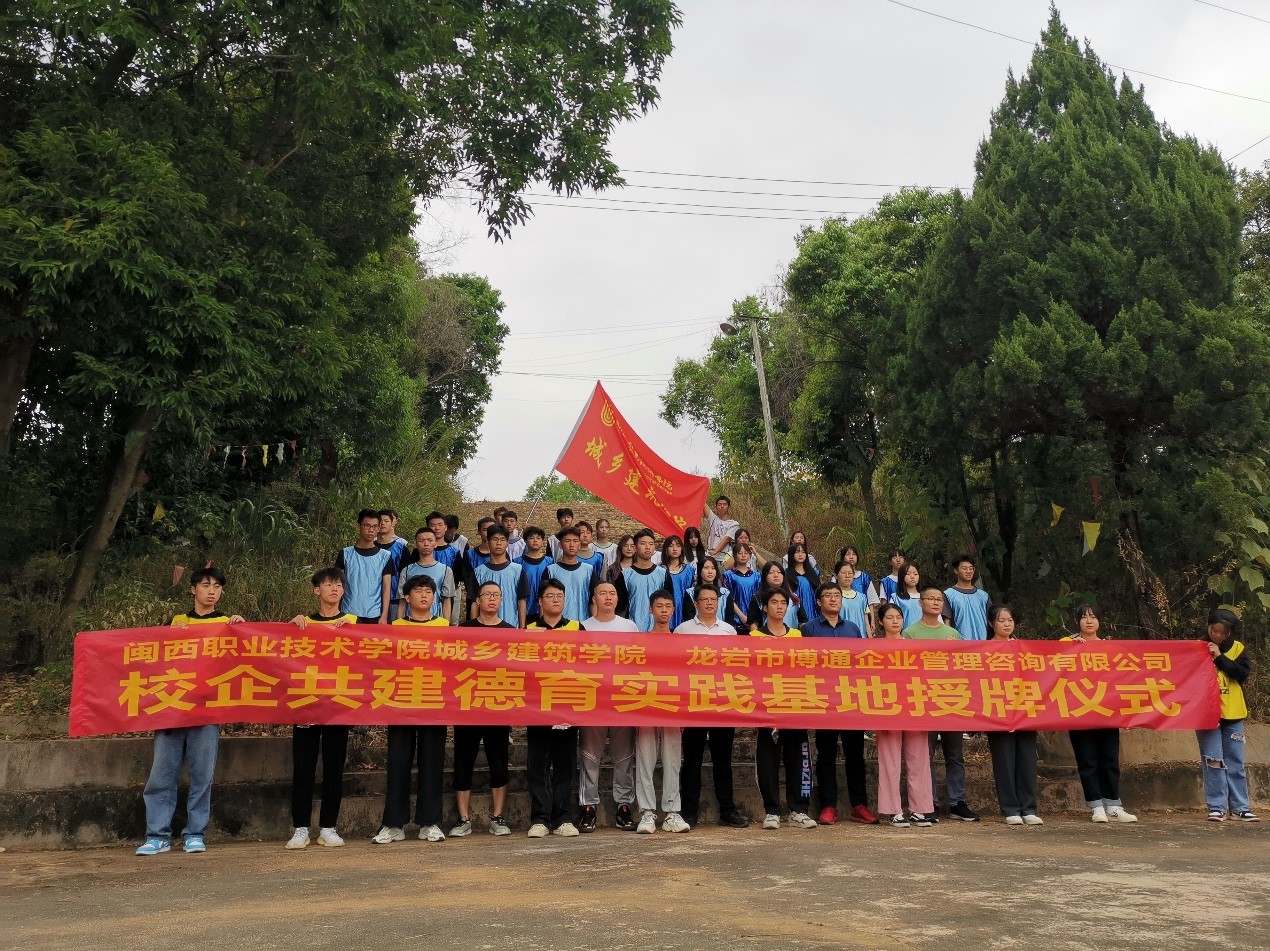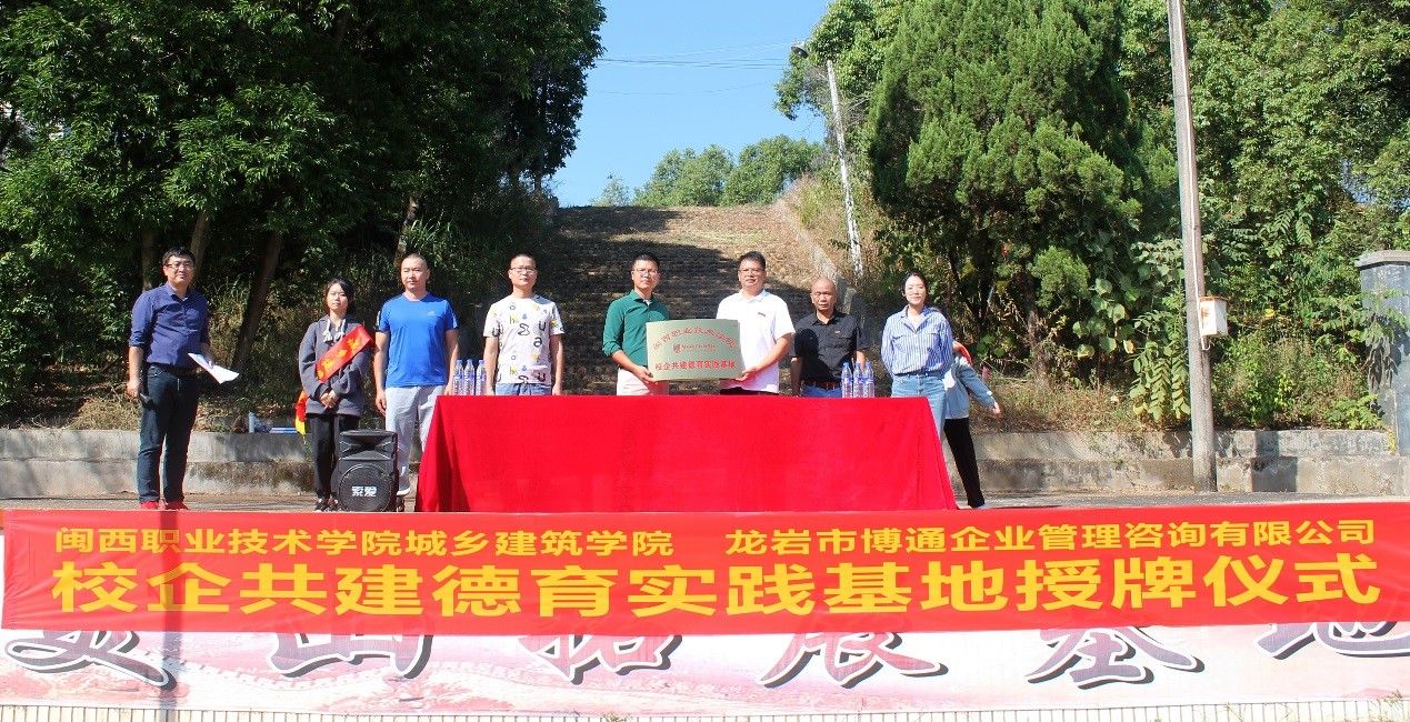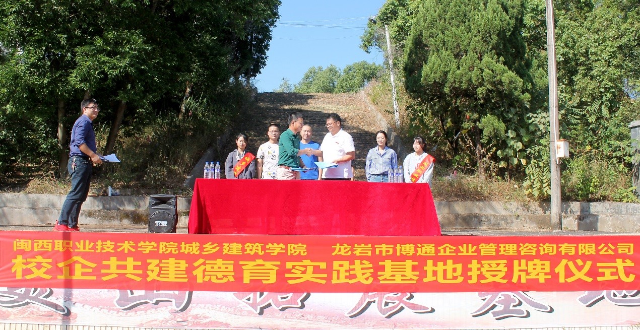 10月15日,在新罗区苏坂镇美山采茶灯研学基地,城乡建筑学院与龙岩市博通企业管理咨询有限公司签订校企共建德育实践基地协议,举行授牌、挂牌仪式。