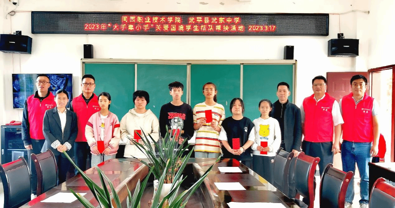 3月17日,城乡建筑学院前往武平县武东中学开展“大手牵小手”关爱困境学生结对帮扶活动。两校和武东镇政府相关人员,武东中学6位家境困难、品学兼优的学生参加。