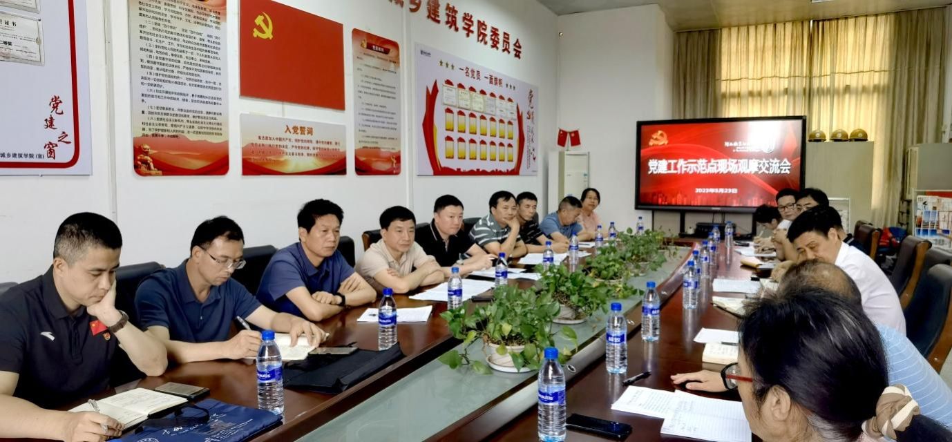 5月23日,MG冰球突破官网党建工作示范点现场观摩交流会在城乡建筑学院举行。校党委副书记李贞鑫、各二级院系党委书记、组织人事处有关人员和城乡建筑学院党委委员参加。交流会由组织人事处处长陈驰主持。