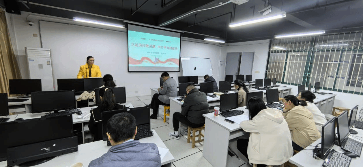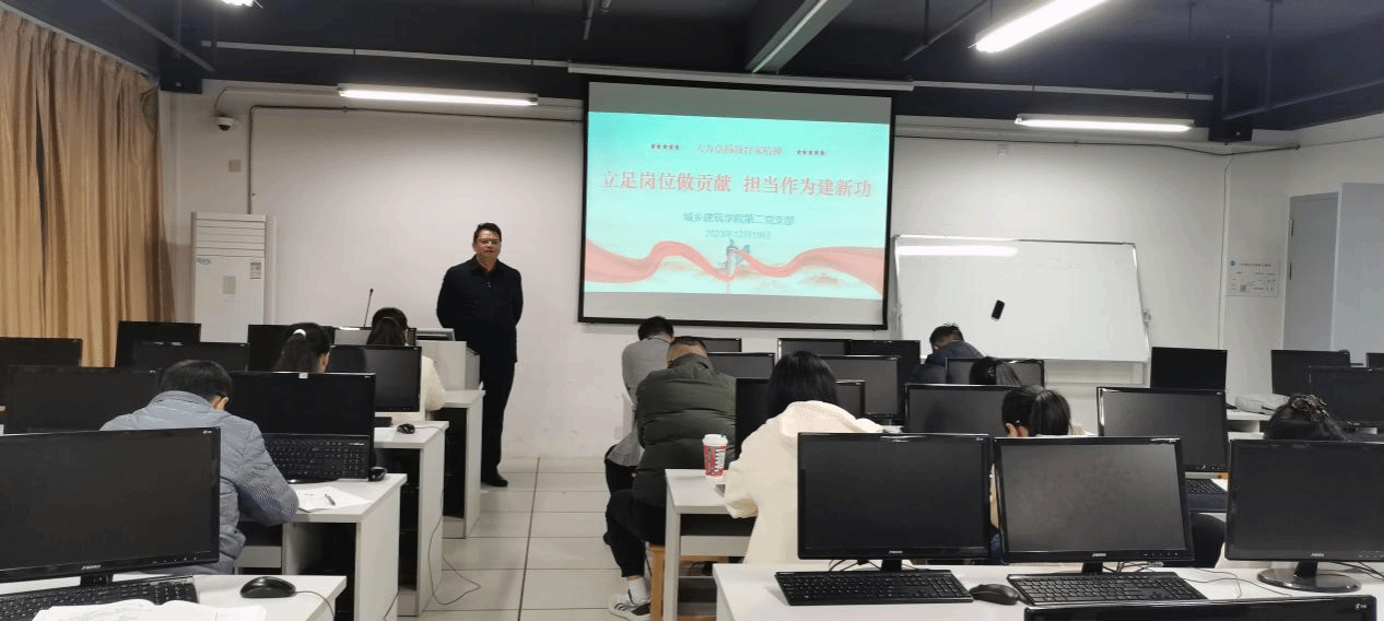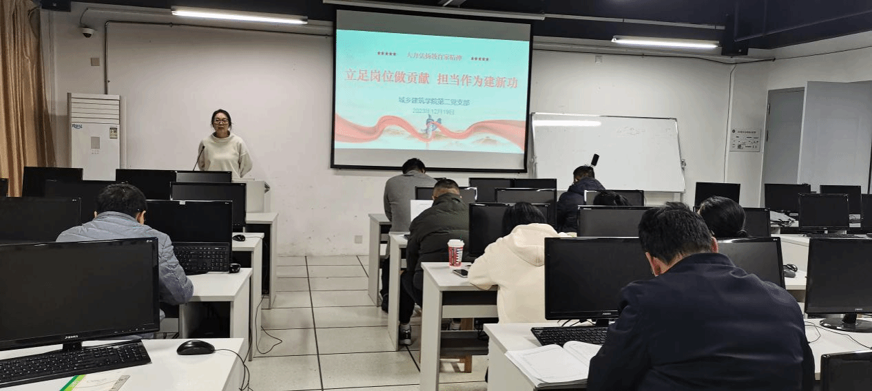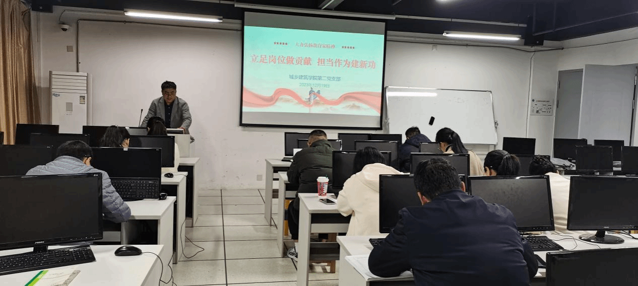 12月19日,城乡建筑学院第二党支部全体党员在万源楼208开展“立足岗位做贡献,担当作为建新功”主题党日活动。党支部书记邱岳丹主持。