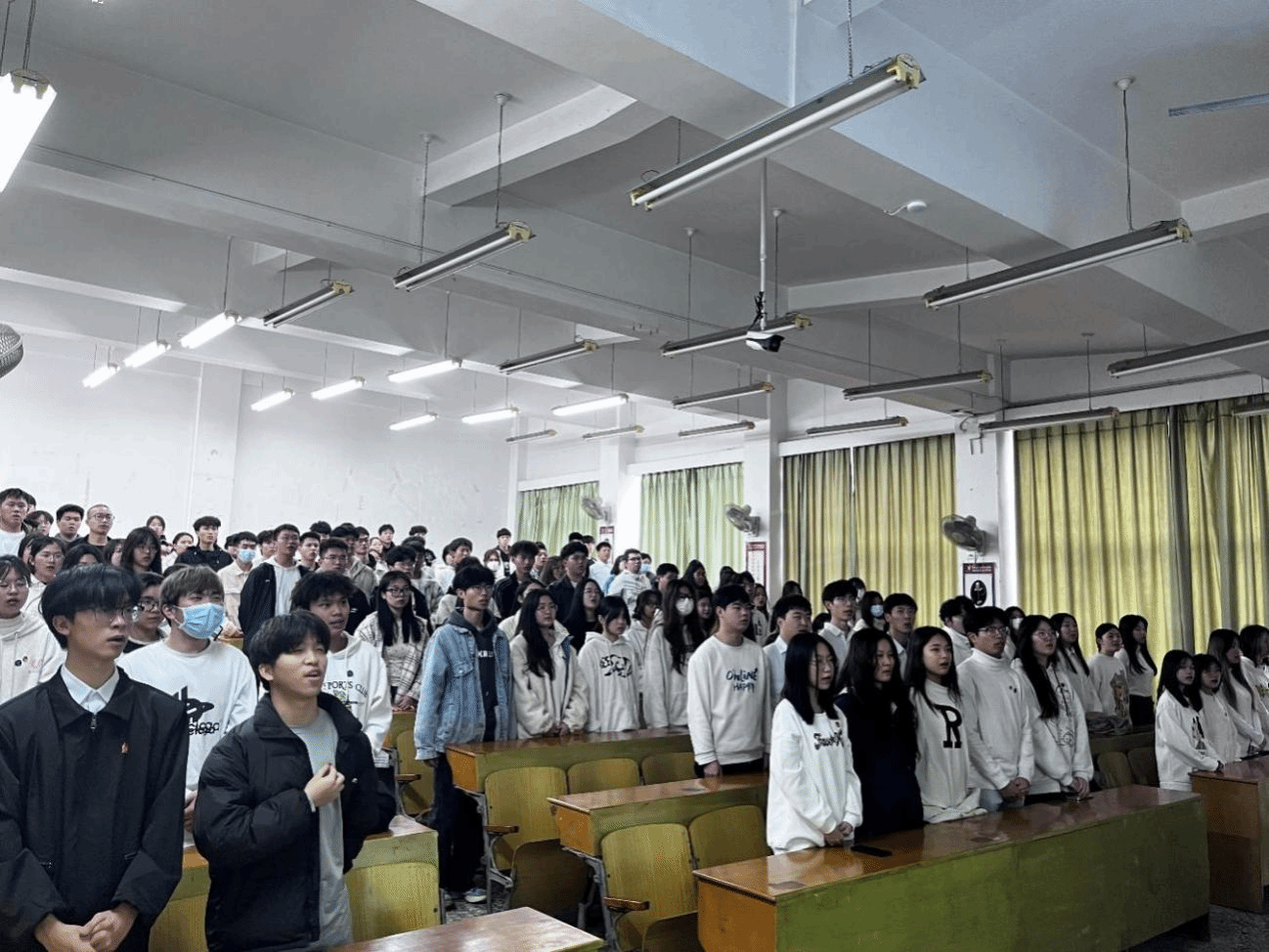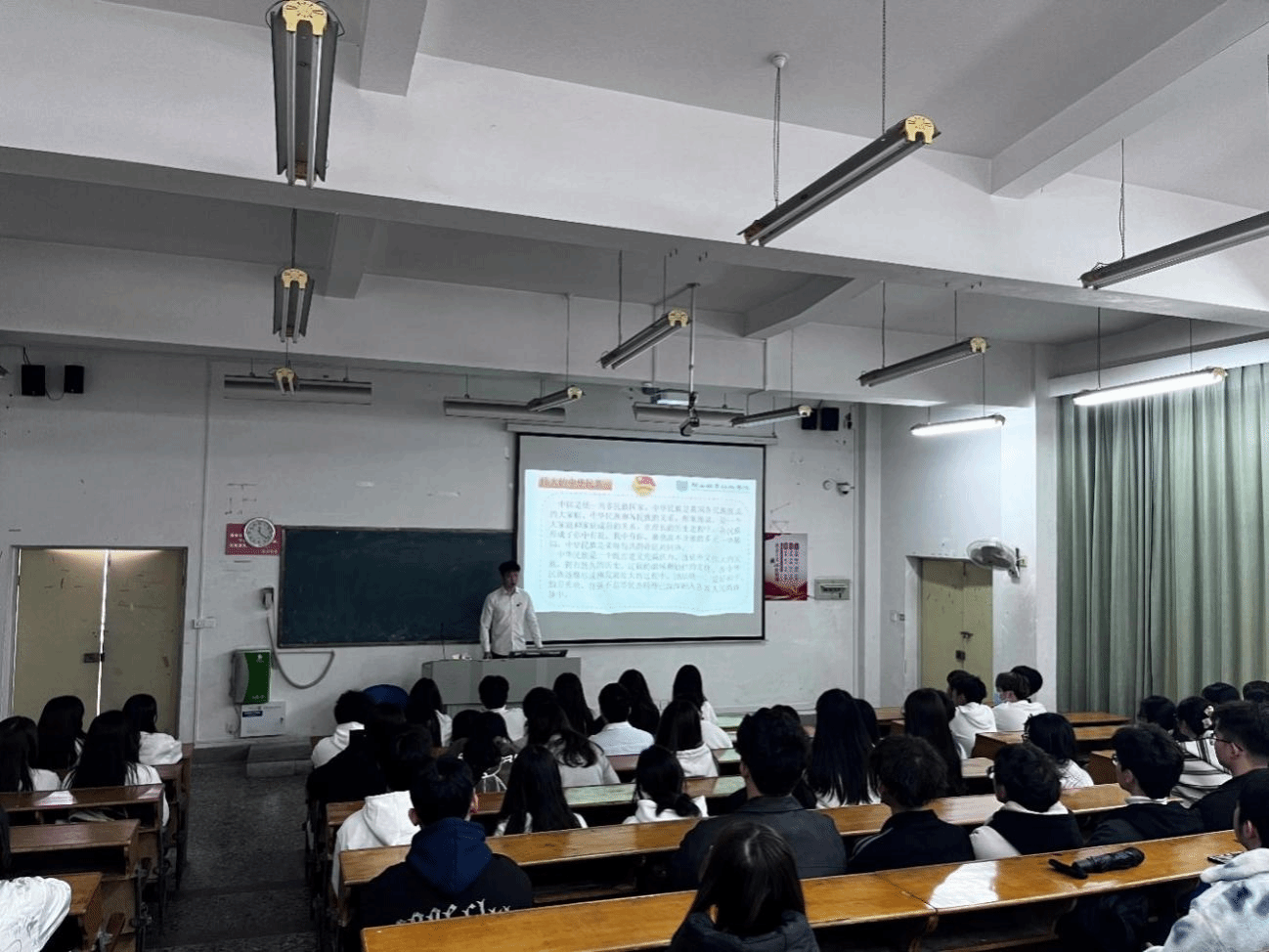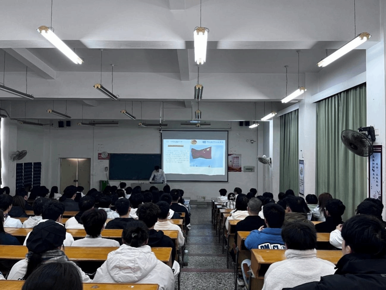 在活动开始前,全体同学起立奏唱国歌,接着团委副书记王陈浩同学重点围绕爱我中华、中华民族的形成与发展以及中华民族精神这三个主题展开讲述。他重点强调以爱国主义为核心的团结统一、爱好和平、勤劳勇敢、自强不息是中华民族精神的主要内容,作为当代大学生,应牢固树立主人翁意识,铸牢中华民族共同体意识,弘扬爱国主义精神,践行社会主义核心价值观,努力为中华民族伟大复兴奉献自己的青春力量。