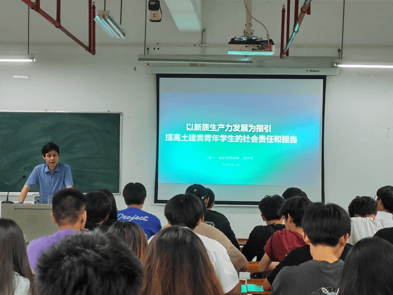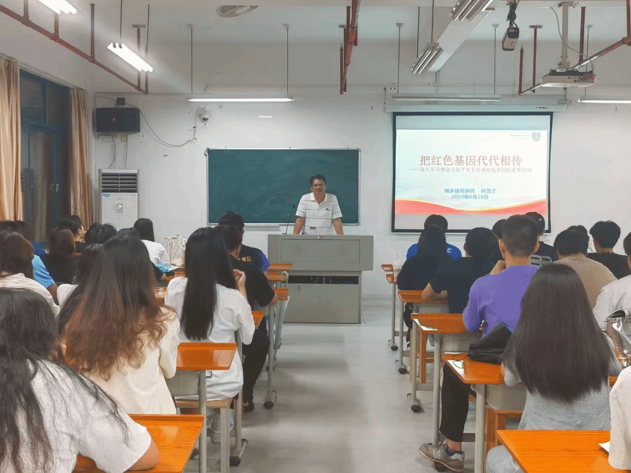 6月18日,城乡建筑学院党委书记李志文、院长林茂才为入党积极分子和2022、2023级全体团员上思政课。