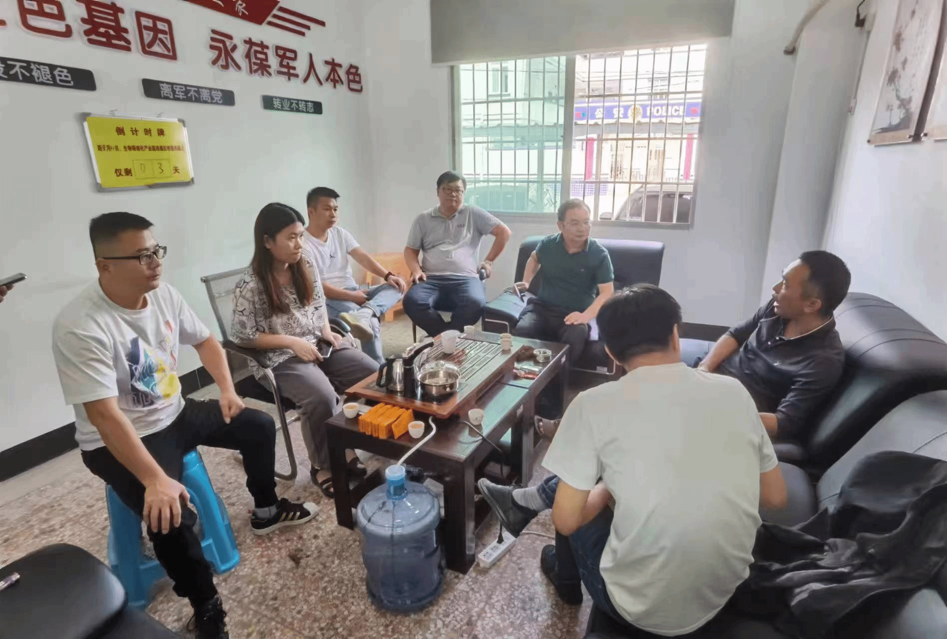 杨慧敏和镇领导干部一起与产业园(扩征)项目的拆迁户交谈