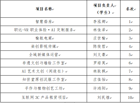 经过激烈的角逐,确定了10个项目的得分与排名,即将进行公示。待公示期满后,创新创业学院将根据创新创业园区(基地)功能定位和现有的空间布局,合理安排项目团队入驻,签订入驻协议。接下来,基地将组织校内外创新创业导师团对入驻项目进行孵化指导,组织开展创业培训、融资对接、创业沙龙等配套活动,加快优秀创业项目孵化步伐。