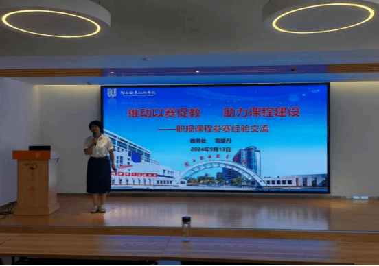 会议邀请教务处副处长范楚丹老师分享了带领团队参加福建省大学生职业发展与就业指导课程教学赛道、福建省教师教学能力比赛的经验和感悟。范老师介绍了赛事规则、比赛流程,分享了以赛促教对课程内容进行模块化重构、紧密结合专业挖掘岗位能力、探索实践多样化课堂教学形式的宝贵经验,给予老师们重要的参考启发和学习借鉴。