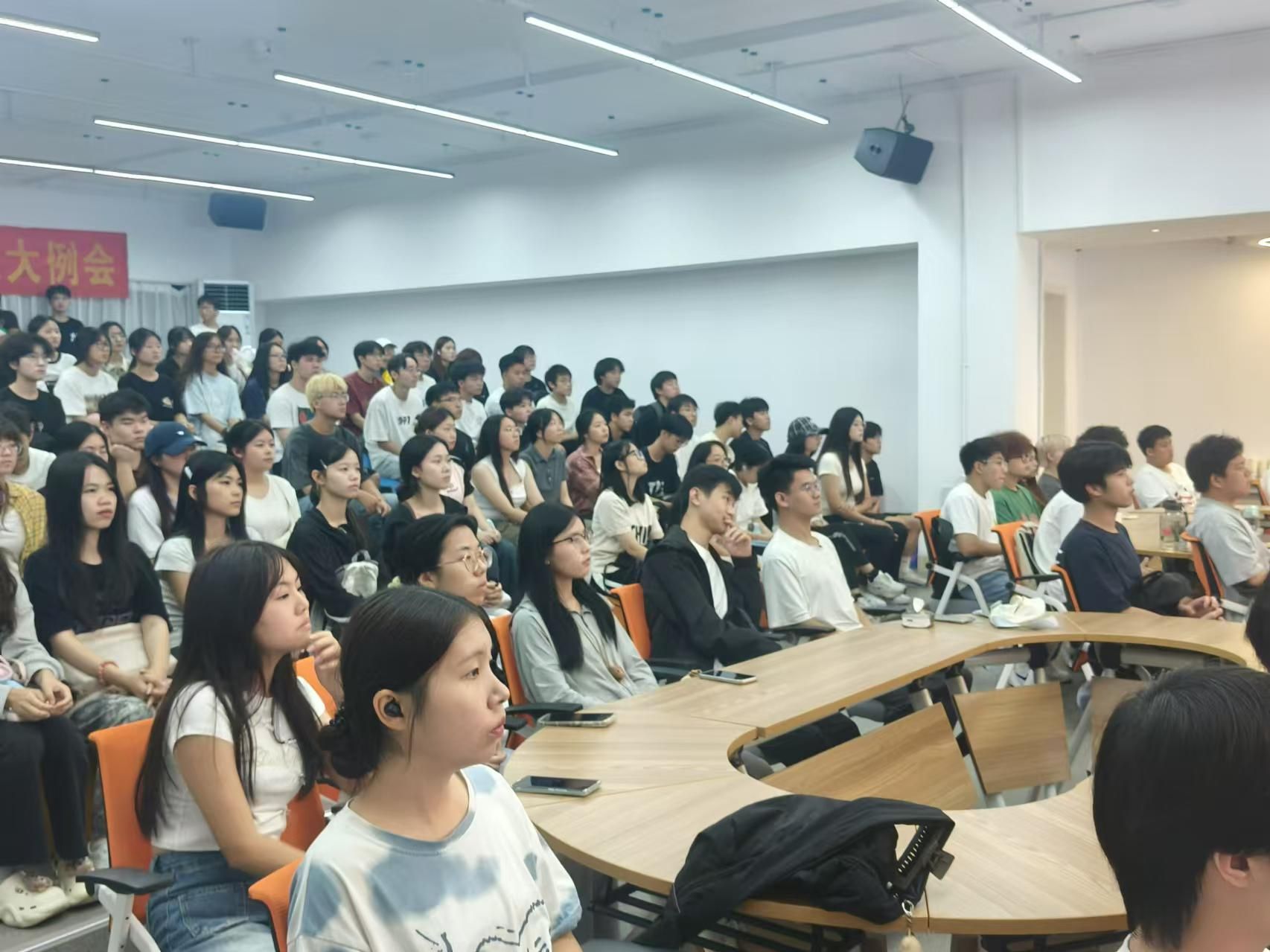 在会议中,我们还特别邀请了22级主席团成员刘民煌进行过往总结。他分享了自己在校青年创业服务站的经历和收获,为新同学们提供了宝贵的经验和建议。
