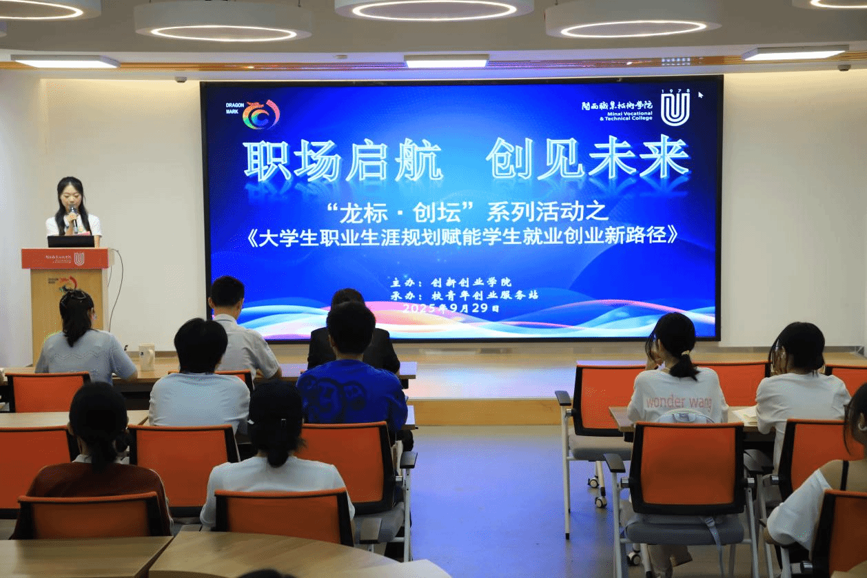 9月29日晚,MG冰球龙标双创孵化基地路演厅内氛围热烈,“龙标·创坛”系列活动顺利举行。本次活动特邀龙岩好工作人才网创始人、龙岩市企动力信息传媒有限公司董事长、省级创业导师张劲华先生,以及龙岩市融创博通企业咨询有限公司高级企业咨询顾问和青少年职业规划师黄燕女士,他们以《大学生职业生涯规划赋能学生就业创业新路径》为主题,为校青年创业服务站全体成员及其他同学共120余人带来一场兼具理论深度与实战价值的专题讲座,助力学子明晰职业方向、夯实就业创业基础。