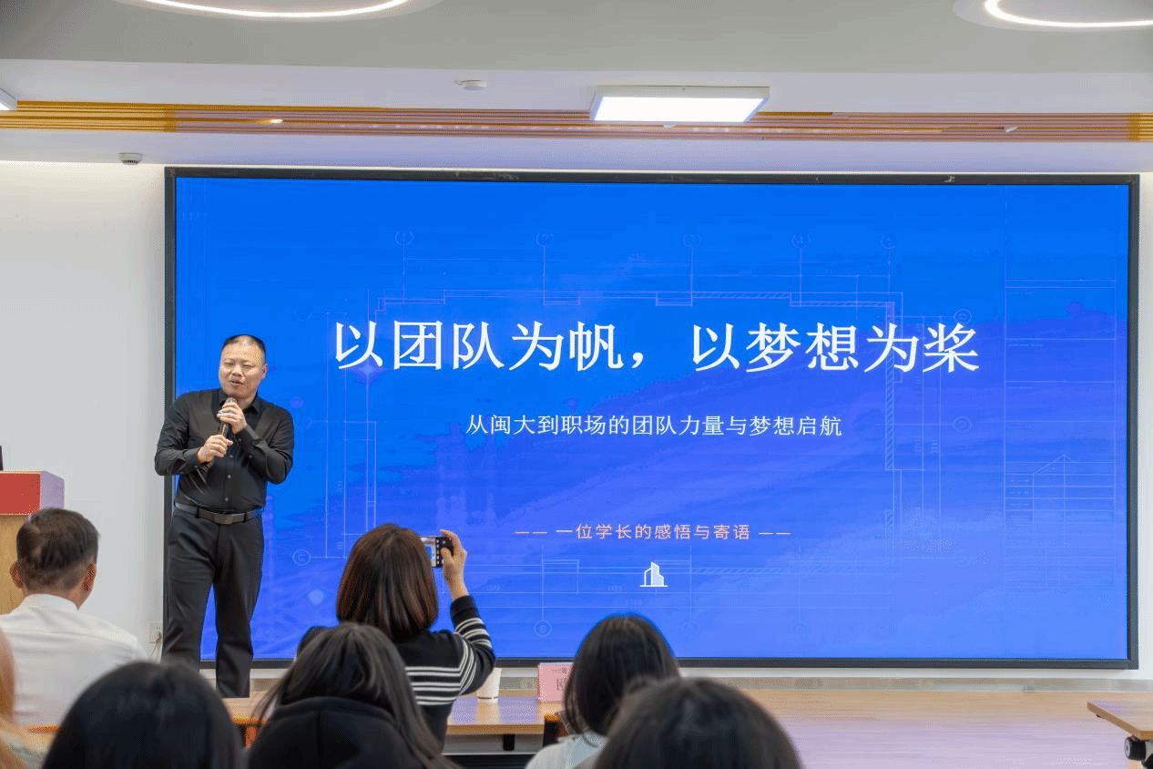 以团队为帆,以梦想为桨 欧劲羽回顾二十四载职场历程,分享从闽大到职场的成长蜕变。他以忠诚为基、团队致胜,讲述漳平粮库项目、康山医院应急建设等实战案例,诠释团队协作的强大力量;寄语学子珍惜校园时光,脚踏实地、勇于创新,在时代浪潮中绽放光彩。