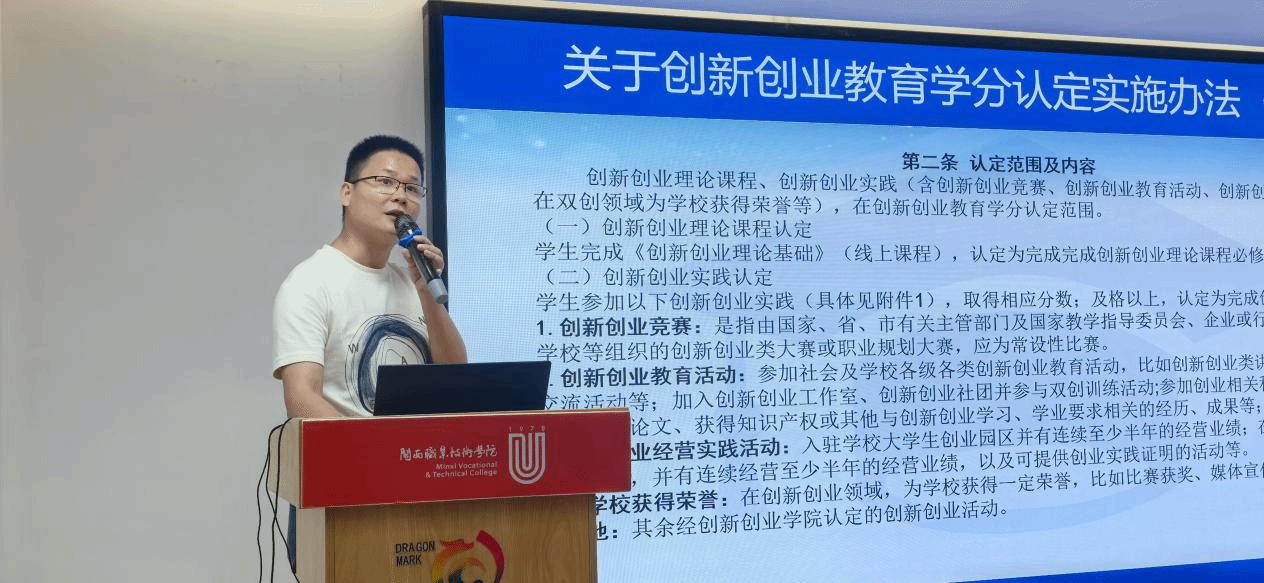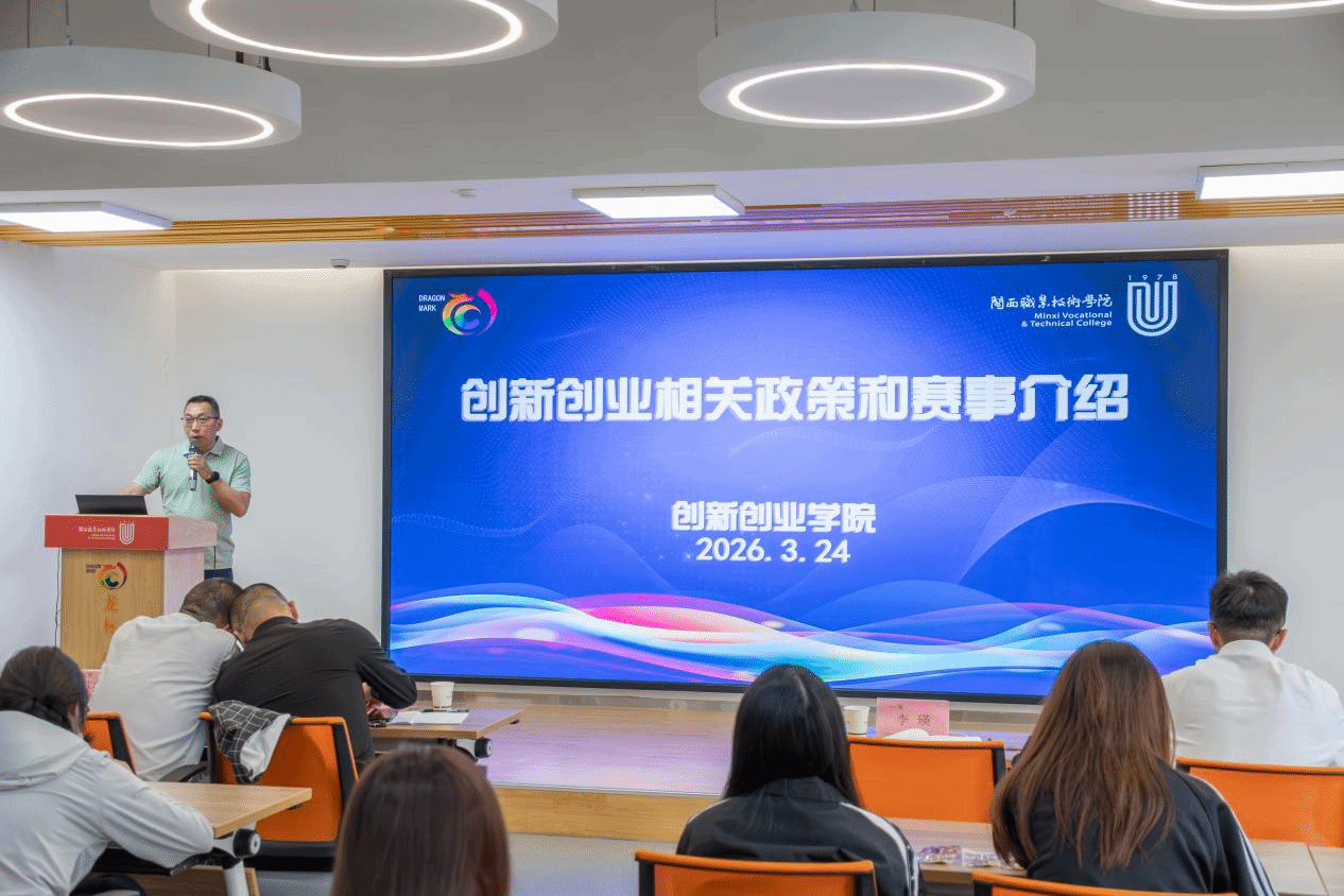 创新创业学院老师现场解读学校及省市双创扶持政策,涵盖创业补贴、场地支持、项目孵化、学分认定等内容,并详细介绍福建省大中专毕业生创业项目资助、“青春之歌” 创业创新大赛、“挑战杯” 等重点赛事,为学子创业参赛指明方向。