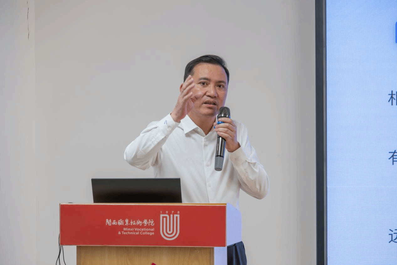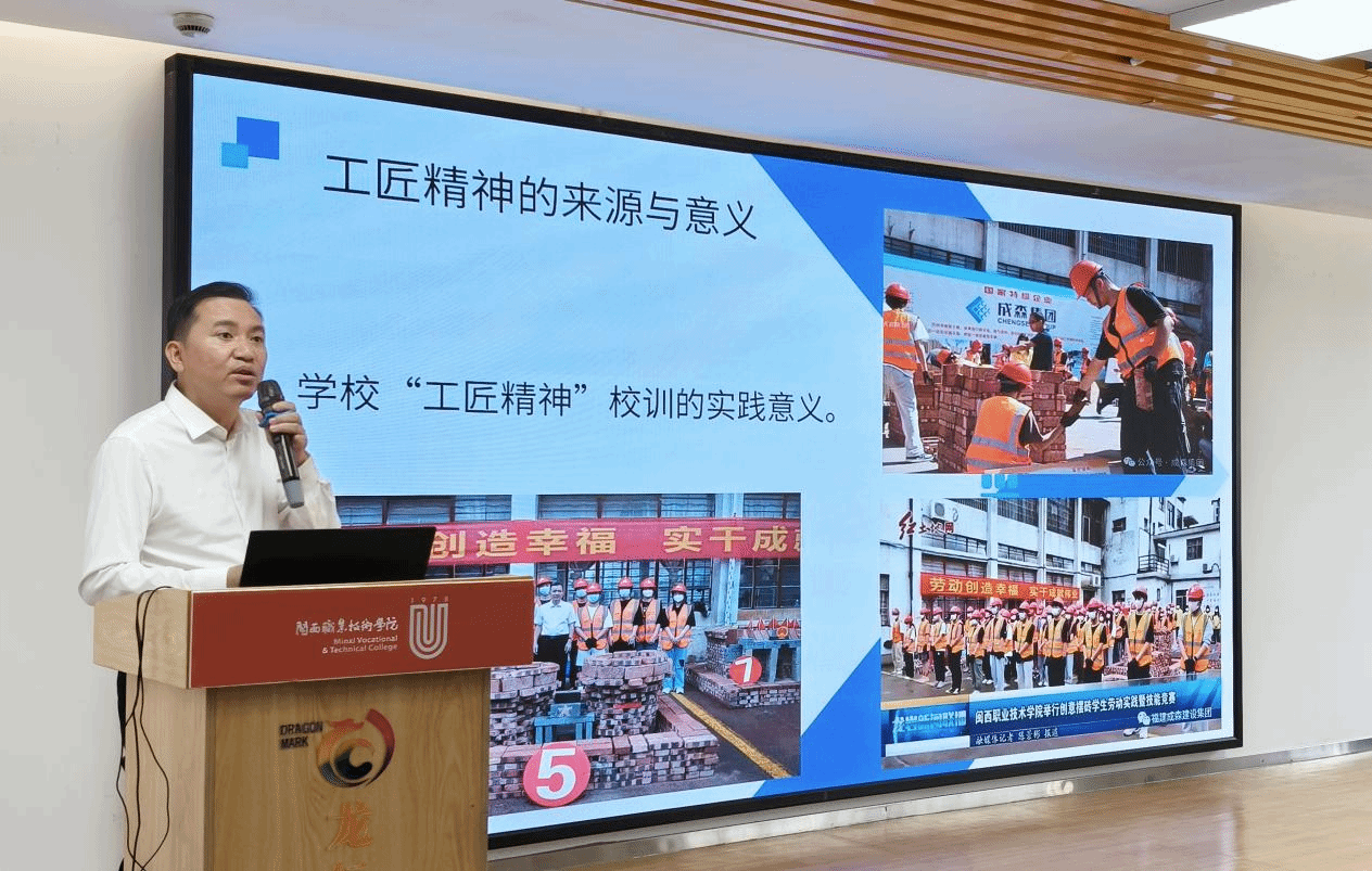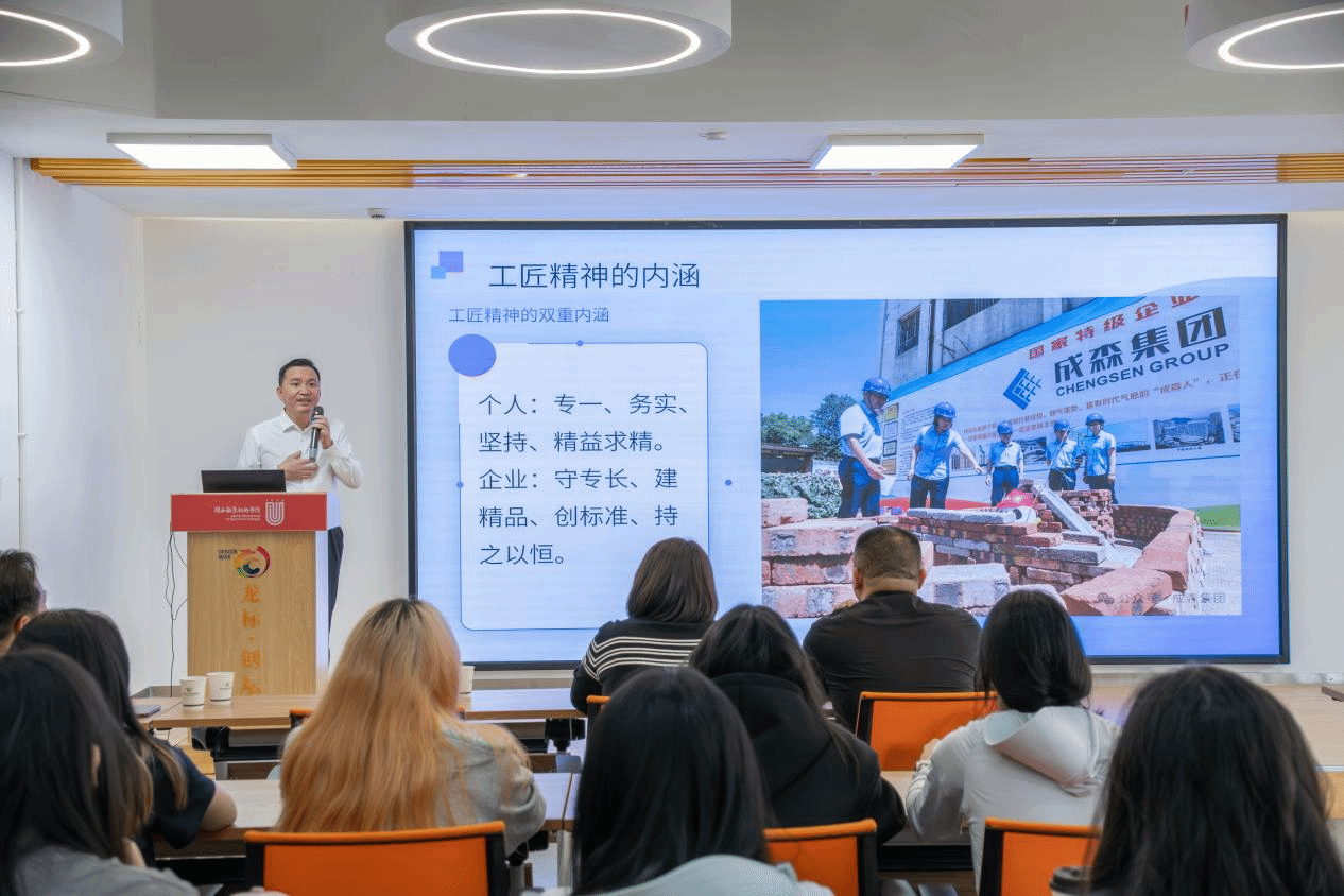 传承红色基因,打磨匠人之心 作为闽大校友,苏振渊以 “低着头进来、平着头读书、昂着头走向社会” 引发全场共鸣。他深耕建筑行业,以工匠精神为创业根基,强调专一、务实、精益求精;从苏区精神中汲取信念,鼓励学子修炼逆商,在逆境中坚持不放弃,用韧性筑牢人生高楼。
