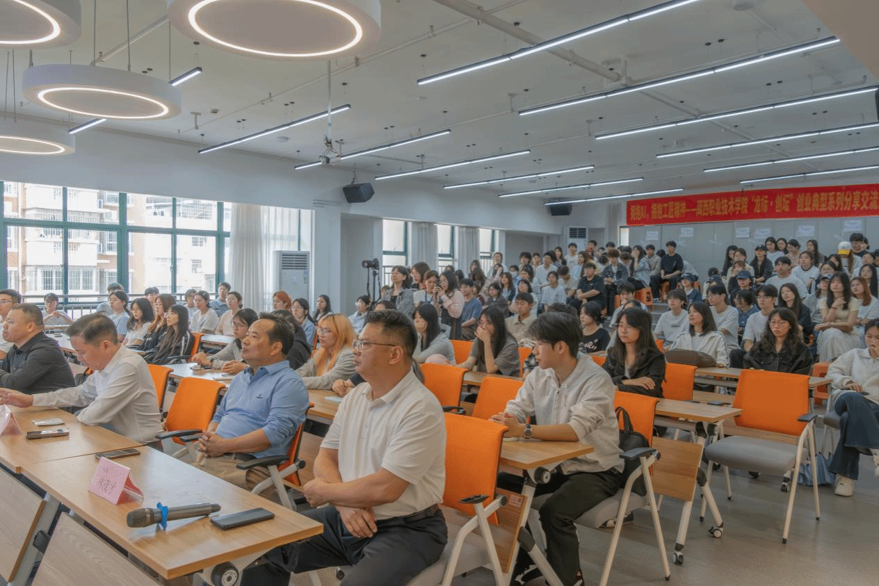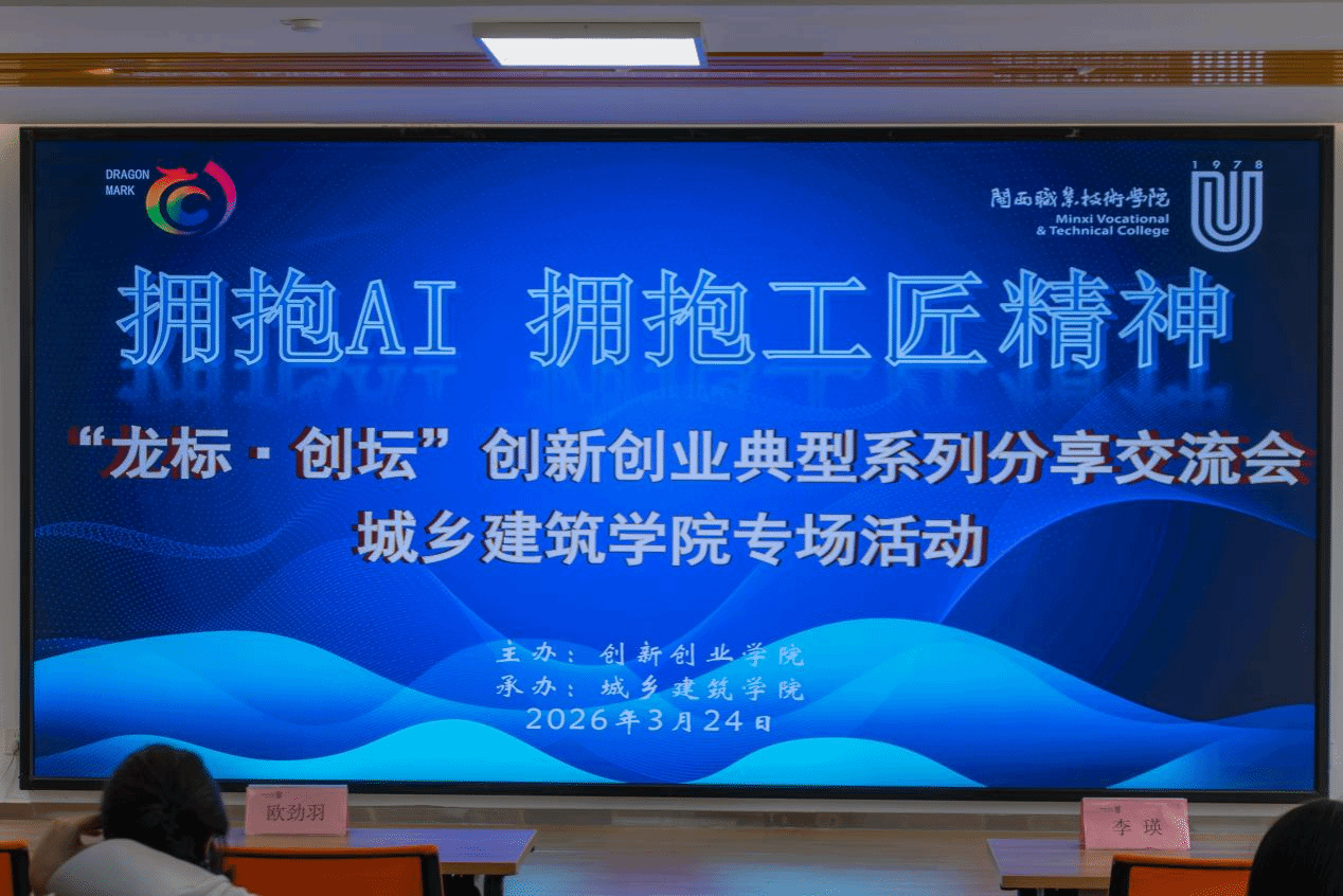 本次活动由创新创业学院主办、城乡建筑学院承办,以 “拥抱 AI,拥抱工匠精神” 为主题,学校党委副书记林伟能出席活动并致辞,优秀创业校友、创业在校生依次分享,双创政策精准解读,全场氛围热烈、干货十足。
