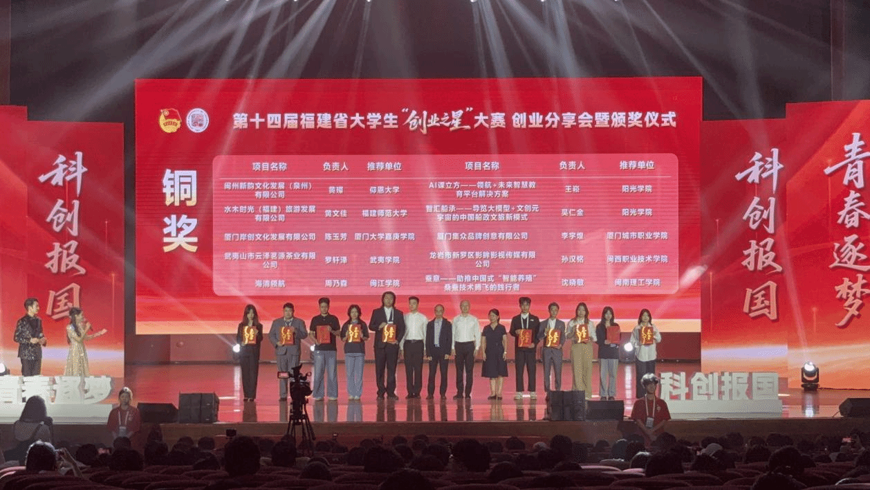 11月9日,在第十四届福建省大学生“创业之星”大赛中,MG冰球龙标大学生双创孵化基地入驻项目《龙岩市新罗区影眸影视传媒有限公司》(团队成员:孙汉铭、黄盺海、曹艳梅、廖婉婷、童颜、洪妍妍,指导老师:陈春福)荣获铜奖,奖金3万元。这是近三年来龙标大学生双创孵化基地入驻项目第二次获同类赛事奖项。
