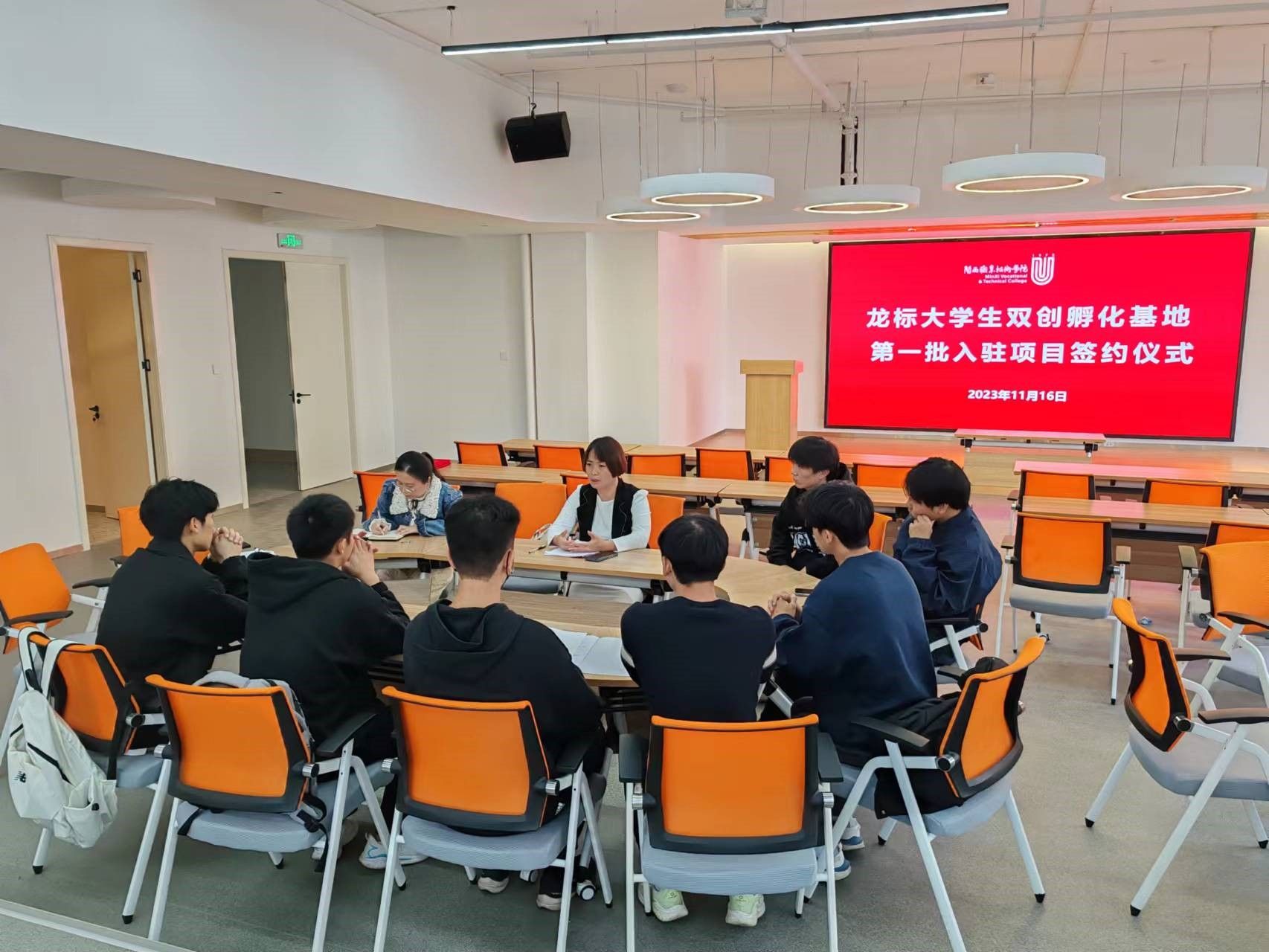 同时,为加快双创孵化基地建设步伐,正式启动大学生创新创业项目落地培育工作,在万源楼三楼龙标大学生创新创业孵化基地,学校授权创新创业学院举行了第一批入驻项目签约仪式。