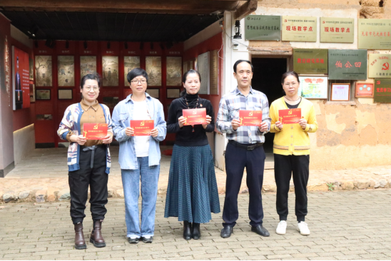 在伯公凹,党员参观中央红色交通线纪念馆,聆听烈士后代讲述“一门七英烈、三块银元”红色故事,以支部为单位组织开展集体过政治生日,现场交流学习心得,面对鲜红党旗重温入党誓词。在万源楼,追寻革命先辈追求真理、为人民谋幸福的光辉足迹。