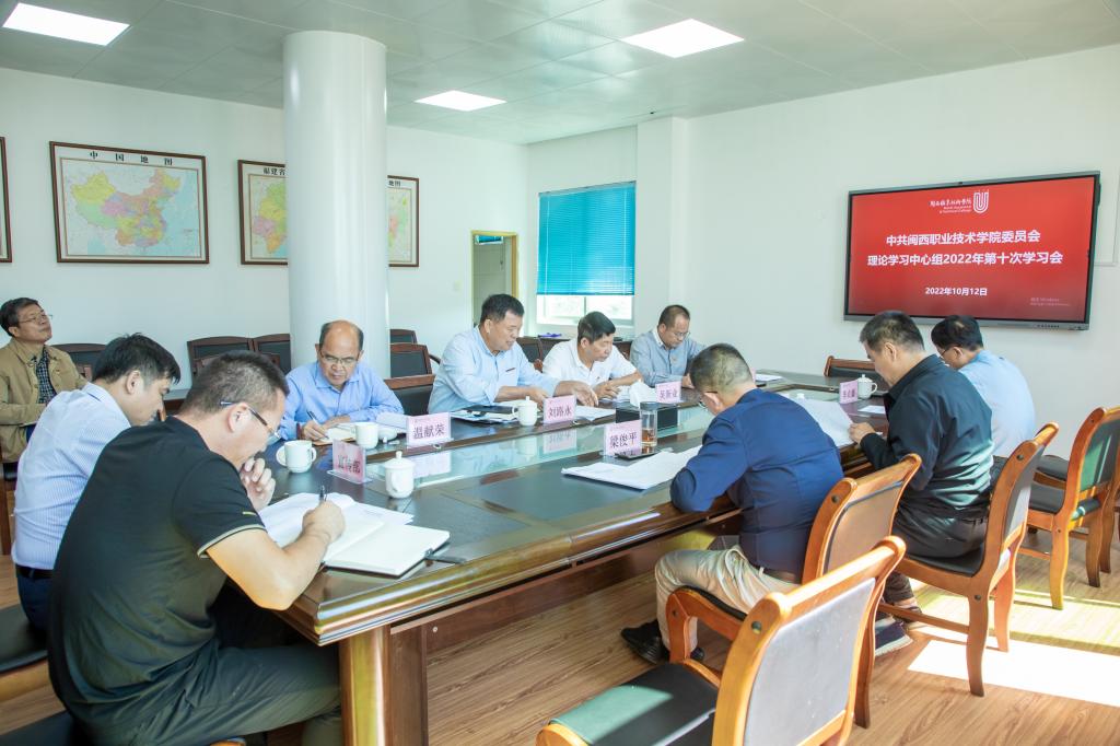 10月12日上午,校党委理论学习中心组召开2022年第十次集体学习会,认真学习贯彻习近平总书记为《复兴文库》所作序言,认真学习教育部等十部门印发《全面推进“大思政课”建设的工作方案》,认真学习尹力书记在纪念福建省苏维埃政府成立90周年大会上的讲话。校党委书记卢伟耀主持学习会,校党委委员、副校长刘路永作“全面推进落实‘大思政课’建设,创新育人模式,实现大思政教育新突破”专题发言,中心组成员围绕学习内容进行讨论交流。
