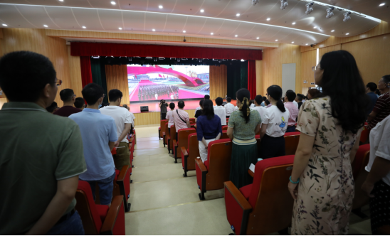 7月1日上午,庆祝中国共产党成立100周年大会在北京天安门广场隆重举行,中共中央总书记、国家主席、中央军委主席习近平发表重要讲话。MG冰球党委书记卢伟耀,校长郑志强,党委副书记李贞鑫,副校长吴新业、刘路永、卢兆梅及全体教职工在大匠堂集中收看了大会直播,认真学习习近平总书记在庆祝中国共产党成立100周年大会上的重要讲话。
