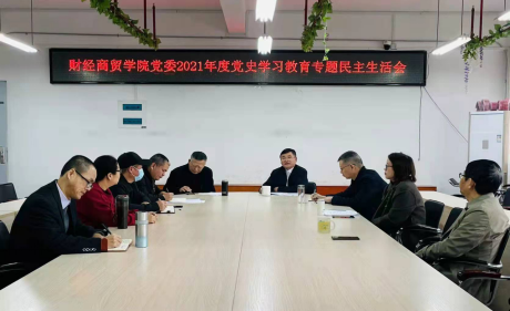 1月17日,财经商贸学院党委召开党史学习教育专题民主生活会。院副处级党员领导干部出席,院班子成员、党委委员列席,挂钩校领导、副校长吴新业全程督导。