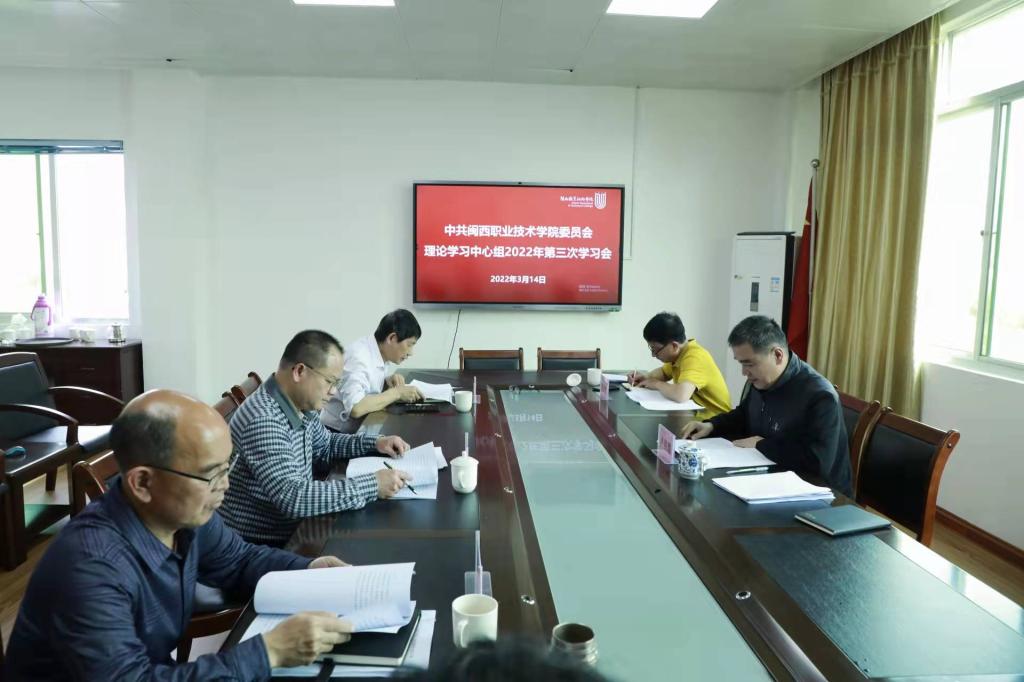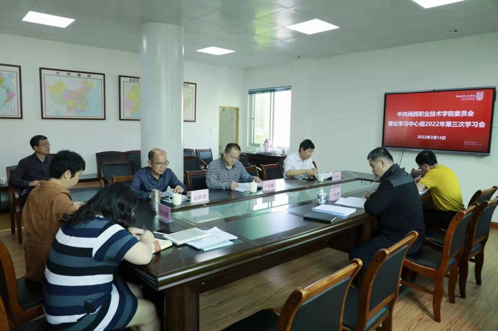 2022年3月14日下午在六楼会议室,校党委召开理论学习中心组2022年第三次学习会,学习会由校党委书记卢伟耀主持。校党委理论学习中心组成员参加学习会。学习会前,中心组成员认真自学《2022年第3期中心组学习资料选编》。