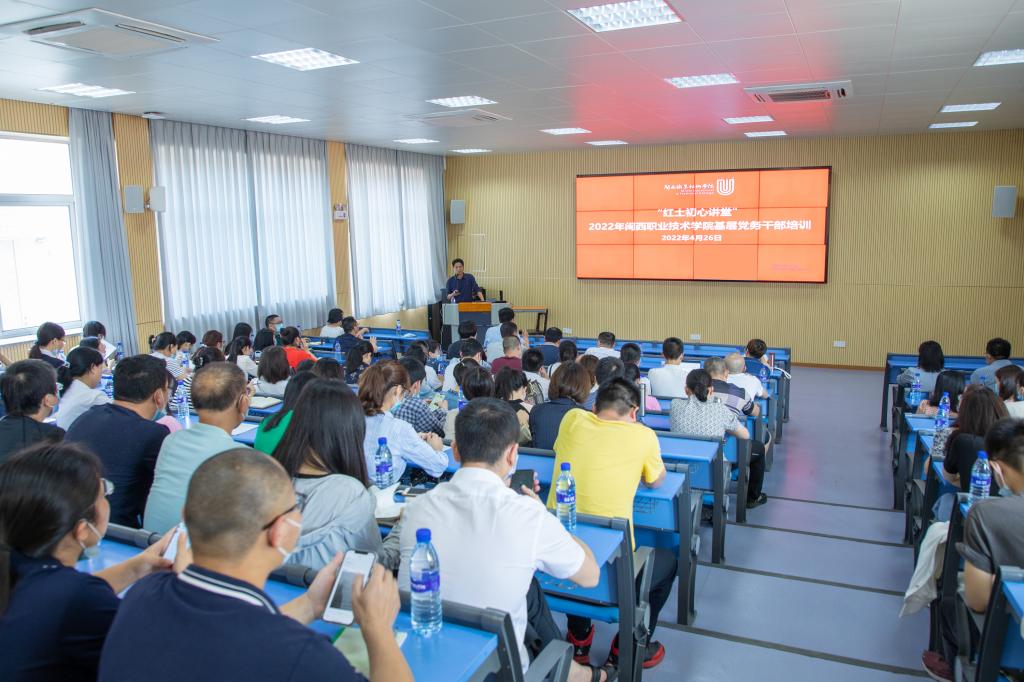 开班仪式上,校党委副书记、党校校长李贞鑫同志作开班动员讲话,阐明了培训的目的意义,并对基层党务干部提出三点要求,一是要坚定信仰,牢记使命;二是要加强学习,知行合一;三是要立足本职,敢于担当。本次培训班,将“红土初心讲堂”与党务业务培训相结合,形式多样,内容丰富。学校党委书记卢伟耀同志作“百年征程得大道,老区不老赶新潮--学悟十九届六中全会精神”专题报告,他以闽西革命筚路蓝缕的史实,生动诠释了党的百年奋斗的光辉历程,并希望基层党务干部,从决议中汲取精神力量,沉着应对挑战,奋力开创学校事业发展的新篇章。卫校党委书记曾平同志作“解析百年大党的成功密码——学习十九届六中全会精神”报告,全面解读了全会的精神内涵。校党委副书记李贞鑫同志和组织人事处的同志,分别就“如何做好党务工作”、“如何加强支部建设、提升党建质量”、“如何抓好发展党员工作规范”等当前党建重点工作进行解析。另外,两名支部书记分别以“党建引领“双高”建设,把支部建在专业群团队上”“抓重点,攻难点”为题,分享了在支部建设上的经验和体会。培训期间还依托学习通平台,组织学习了《中国共产党基层组织选举工作条例》《中国共产党普通高等学校基层组织工作条例》《中国共产党党员教育管理工作条例》《中国共产党支部工作条例》《中国共产党组织处理规定(试行)》等党内制度和学校制定的相关规章制度。