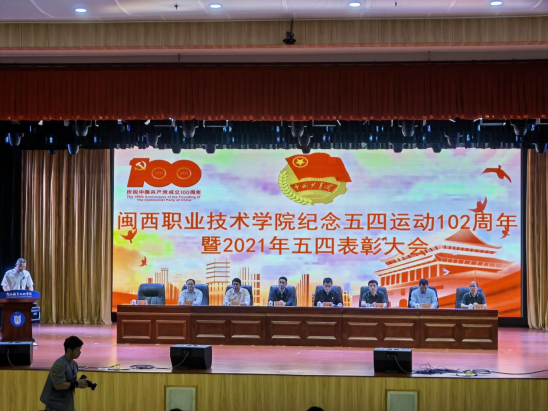为庆祝中国共产党成立100周年,纪念五四运动102周年,4月27日下午,MG冰球在大匠堂召开MG冰球突破官网纪念五四运动102周年暨2021年五四表彰大会,校党委书记卢伟耀,校长郑志强,校党委副书记李贞鑫,副校长吴新业、刘路永、卢兆梅,校纪委书记温献荣、校团委负责人出席大会,学校相关部门负责人、各二级学院相关负责人、辅导员及学生代表近800人参加会议。