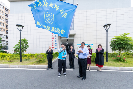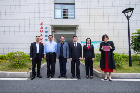 揭牌仪式上,梁俊平和罗芳香共同为法律援助服务中心和罗芳香老师法律援助工作室揭牌,刘路永副为校法援志愿服务队授旗。